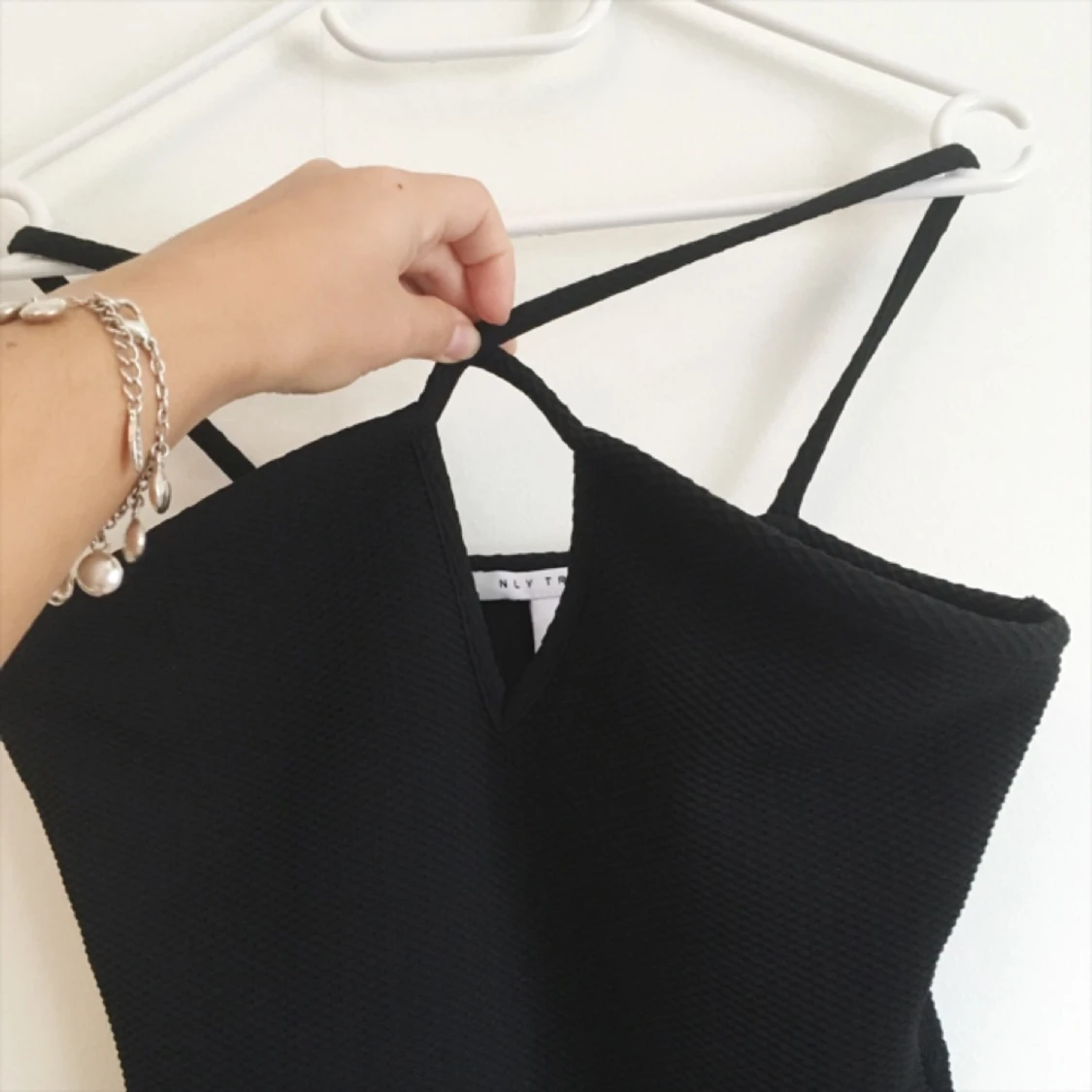 Snygg svart klänning från Nelly! Banden korsas på framsidan vilket jag försökte visa på bilden 🌞 endast testad!