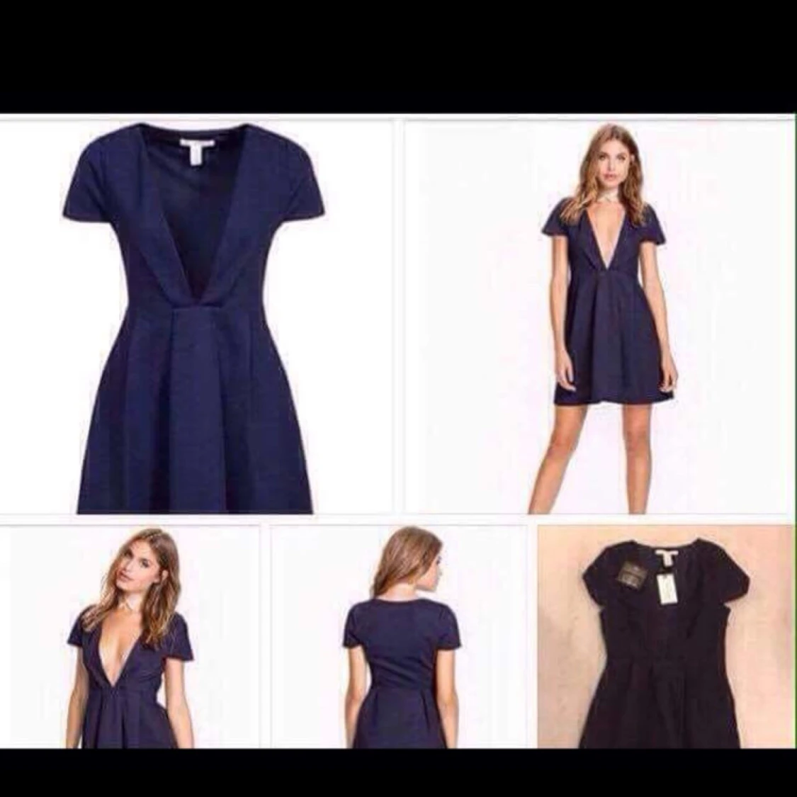 Snygg marinblå klänning från Nelly aldrig använd lapparna kvar strl S