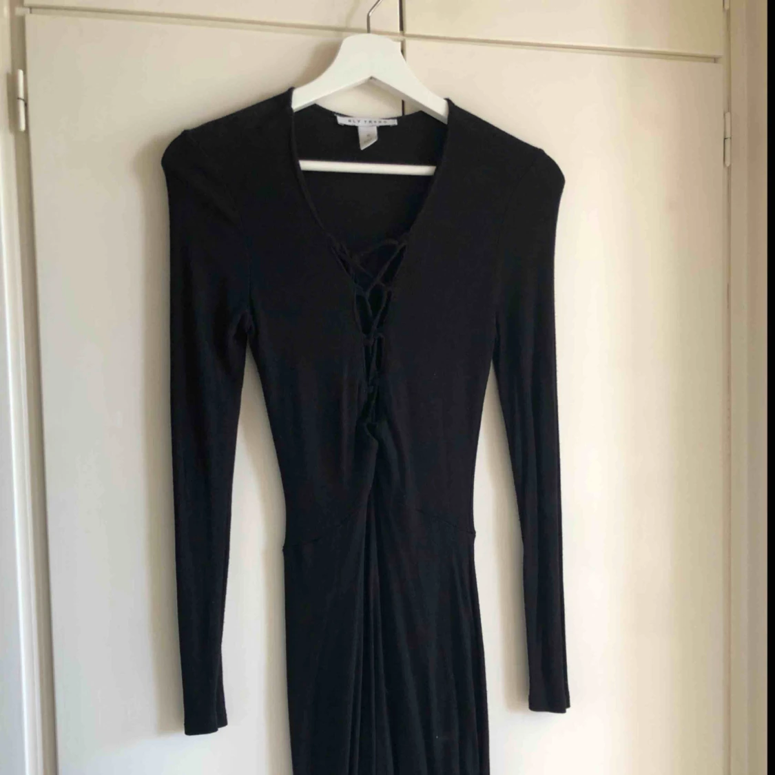 Svart klänning från Nelly.com med snördetaljer vid brösten. Storlek S. Köparen står för frakten