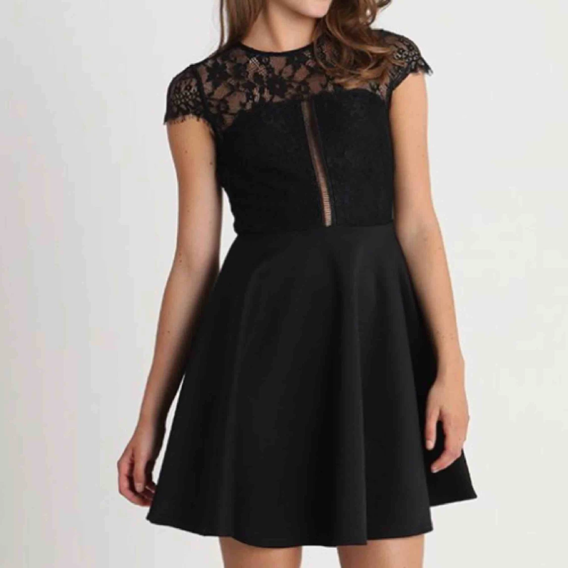 Jättefin svart klänning med spets. Använd endast en gång så är i väldigt bra skick! Köparen står för frakten💗