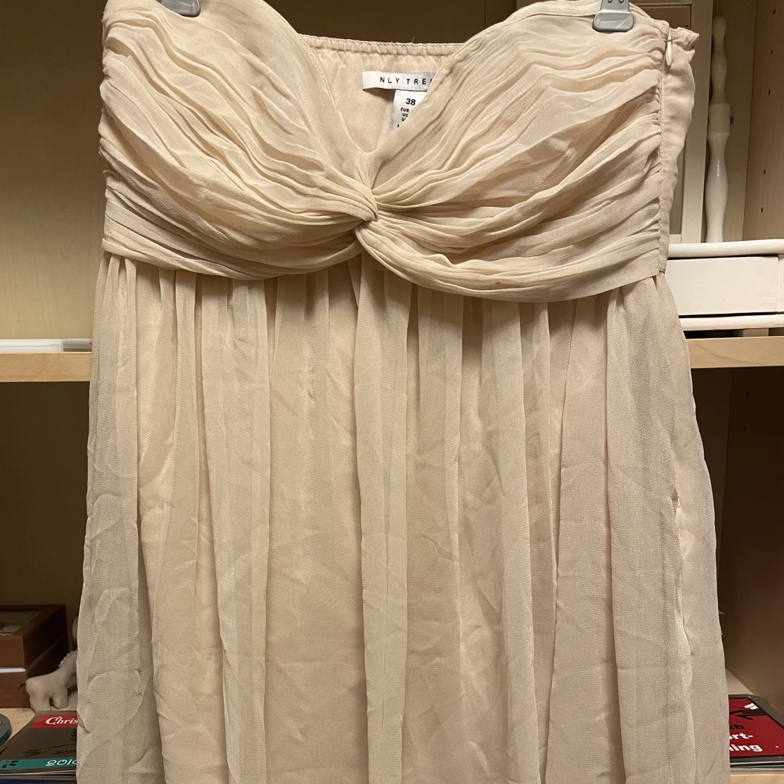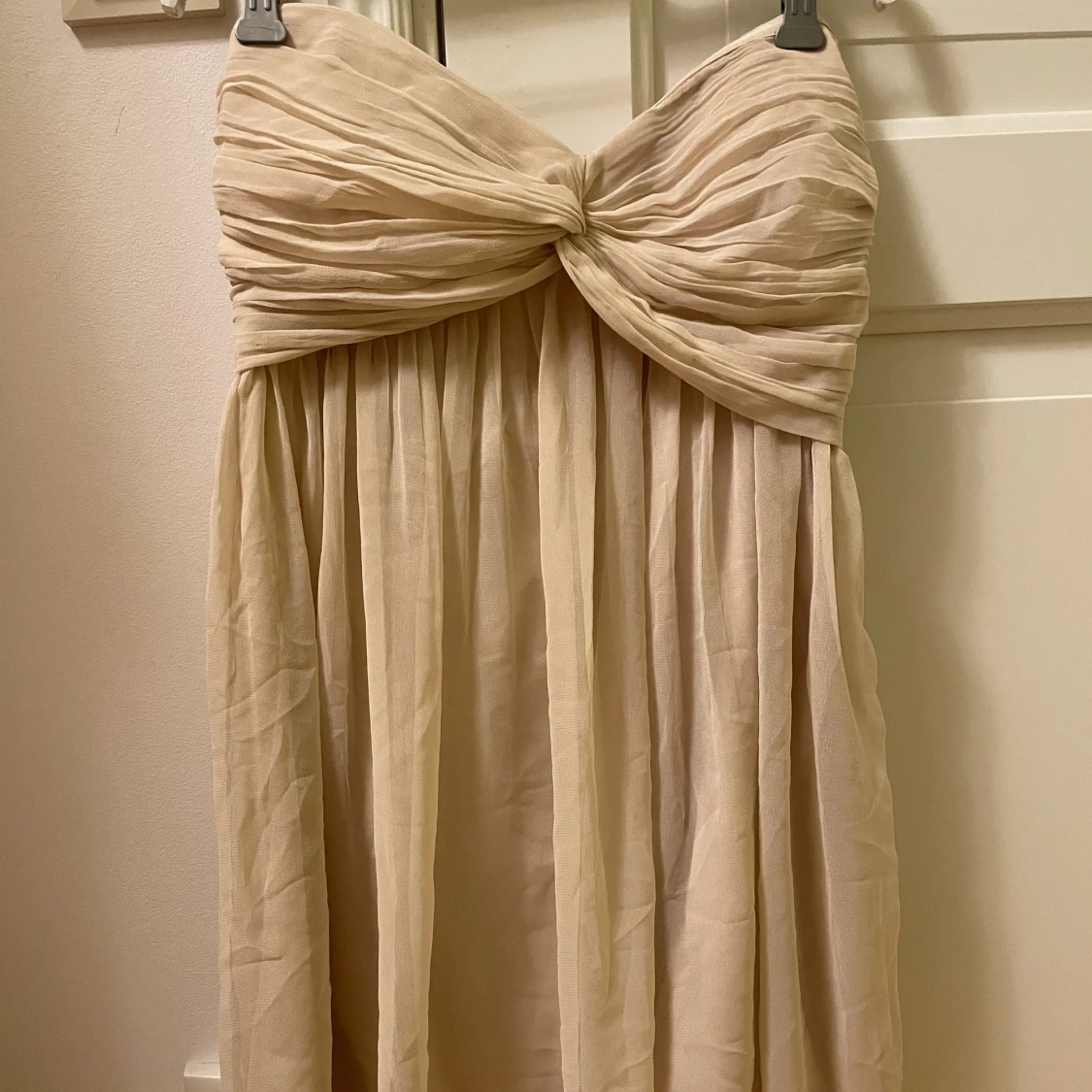 Champagnefärgad jättefin klänning utan axelband. Sparsamt använd ✨