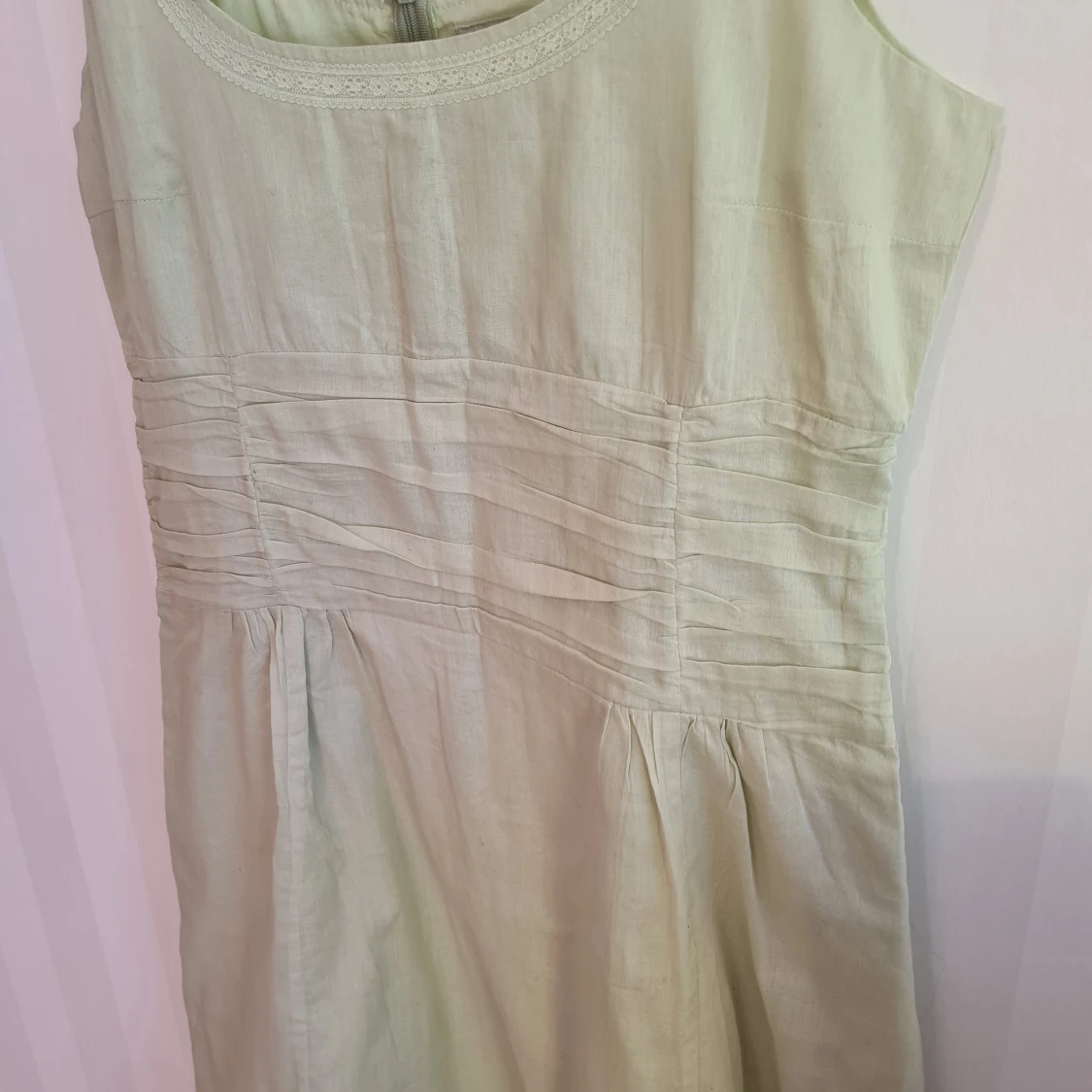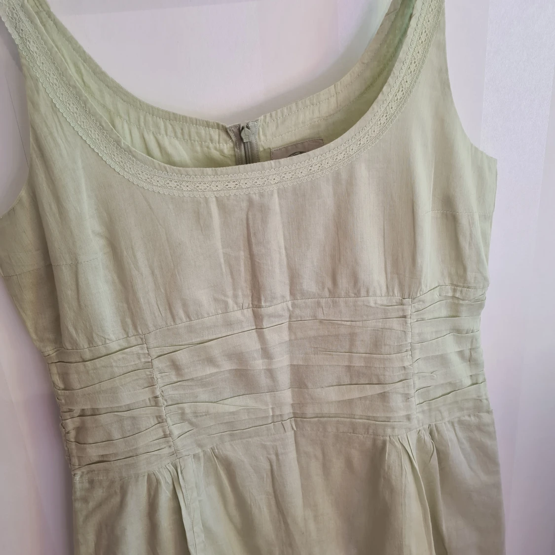 Klänning från Noa Noa. Strl L. Två skira lager av tyg. Dragkedja i ryggen. Bystmått: ca 47,5 cm ×2. Mått från ärmhåla och till längst ner på klänningen: ca 88 cm. Tvättad men aldrig använd.