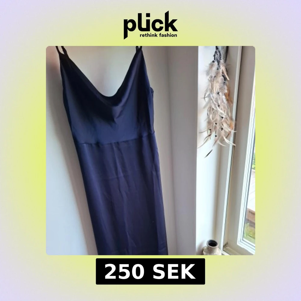 Supersnygg mörkblå långklänning från Vila med tunna axelband och draperad urringning. Klänningen har en elegant, slät yta och rak passform som faller snyggt längs kroppen. Perfekt för dig som gillar stilrena och minimalistiska looks. Önskas fler bilder hur passformen är går det att efterfråga. Dock är klänningen för stor på mig därav anledning till varför den säljs.