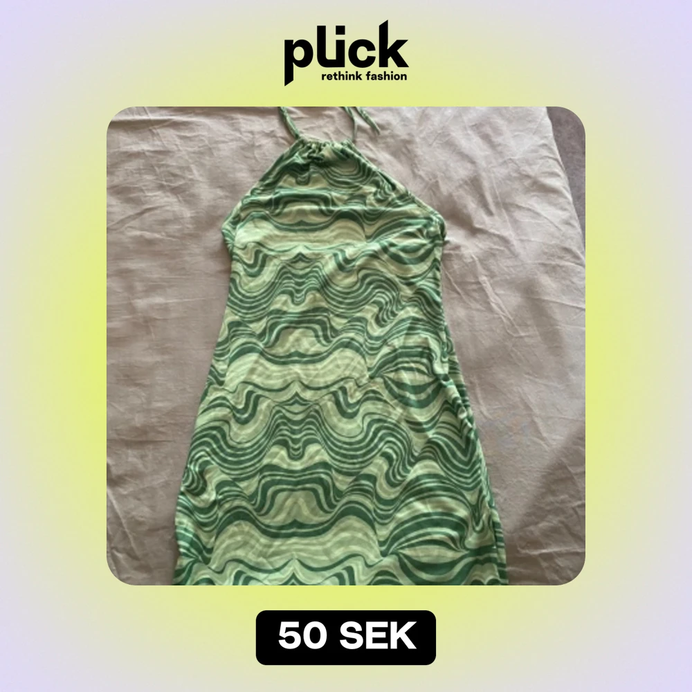90tals klänning öppen rygg flerfärgad grön knytning hals