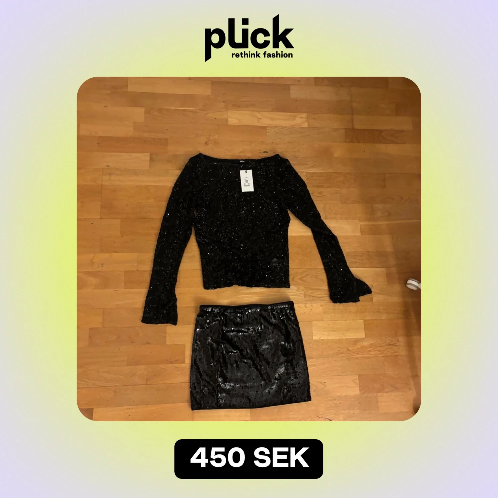 Säljer en glittrig svart paljettopp från Bik Bok i storlek M. Kjolen är köpt på SHEIN men aldrig använd. Köpte den för att ha den tillsammans med toppen på nyår men har nu köpt en annan klänning💓