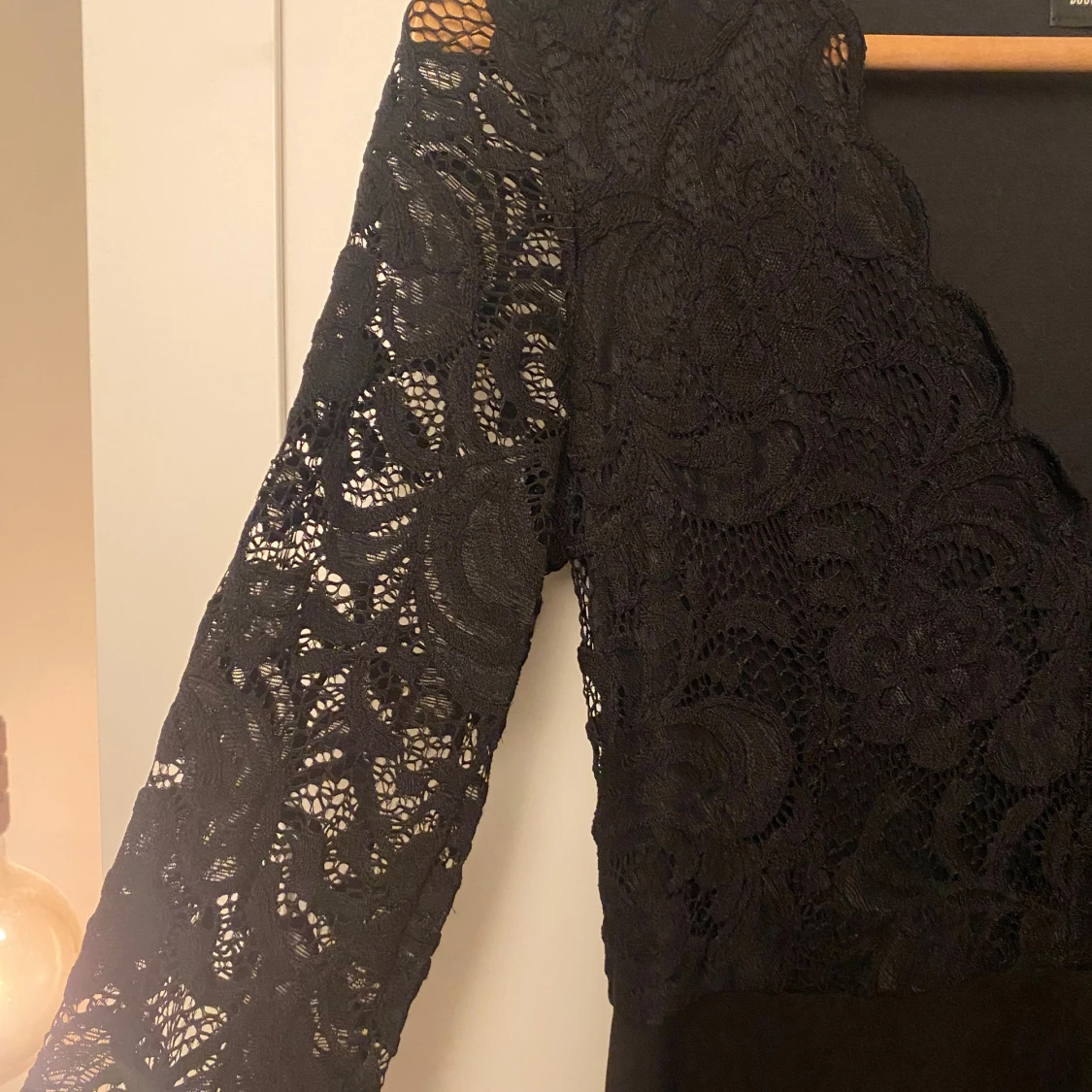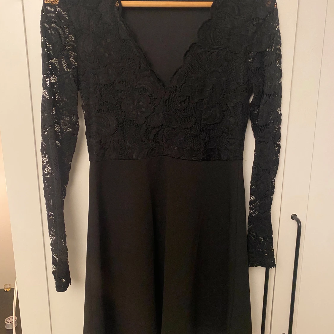 Elegant svart klänning från Bubbleroom med v-ringad spetsöverdel och långa spetsärmar. Kjoldelen är slät medan överdelen samt ärmarna är i spets. Perfekt till jul och nyårsfirandet💕💕