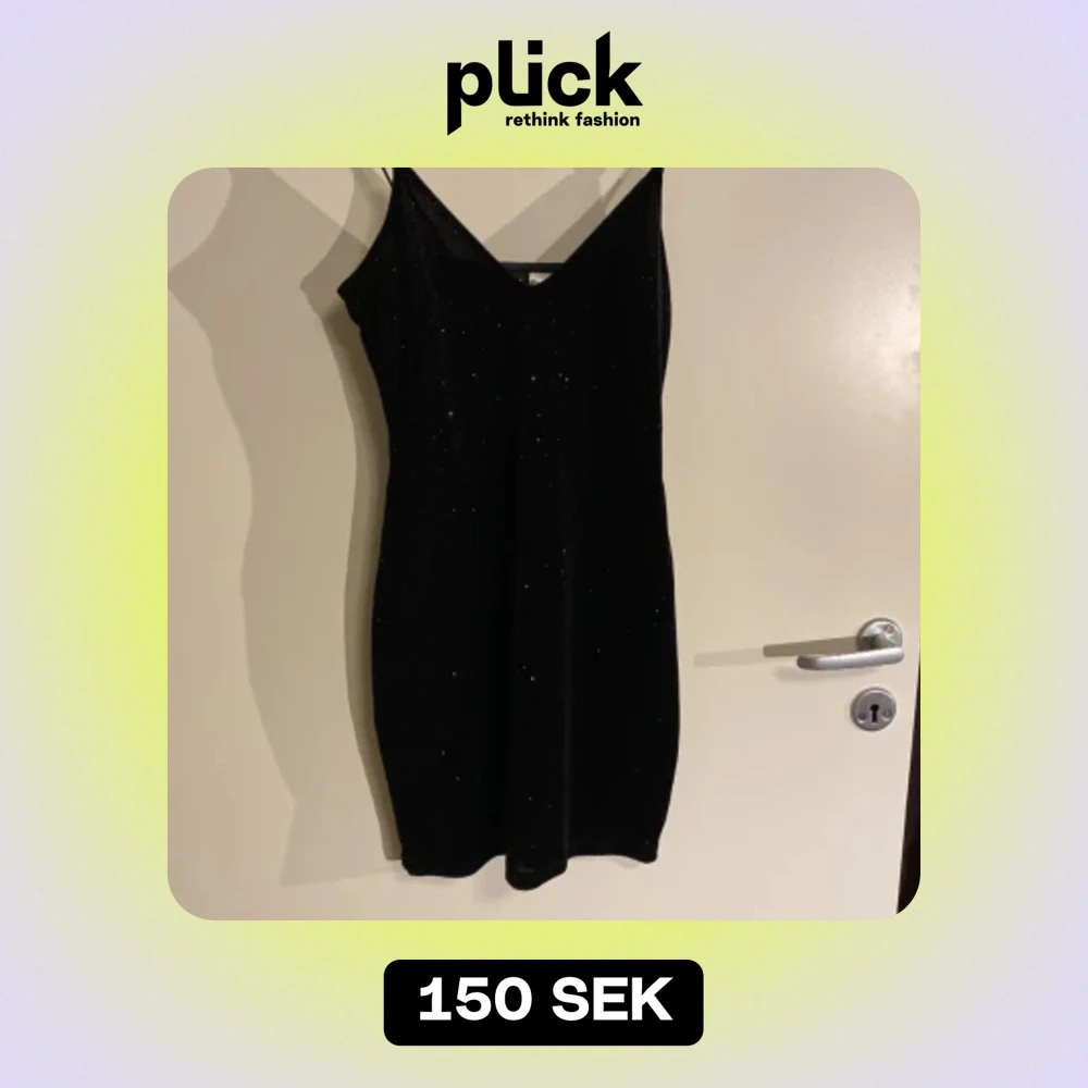 Säljer en superfin svart klänning med glittriga detaljer. Den är ärmlös och har en tight passform som verkligen framhäver figuren. Perfekt för fest eller nyår! Klänningen är kort och har en elegant v-ringad design.