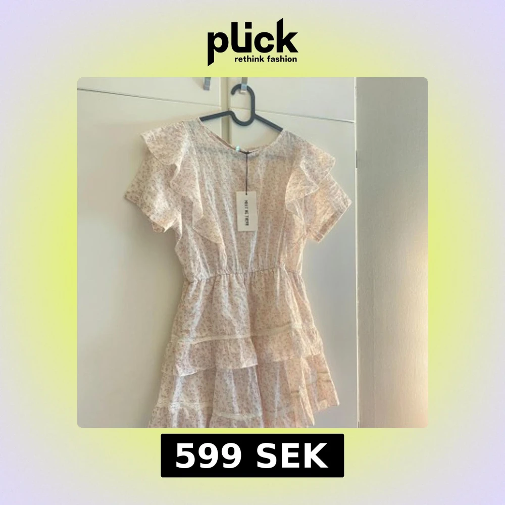 Superfin blommig klänning från Meet Me There i ljusa färger . Klänningen har volangdetaljer på ärmar och kjol, kort ärm och resår i midjan. Tunt, luftigt material med små rosa blommor på vit botten. Perfekt för sommaren!!☀️☀️