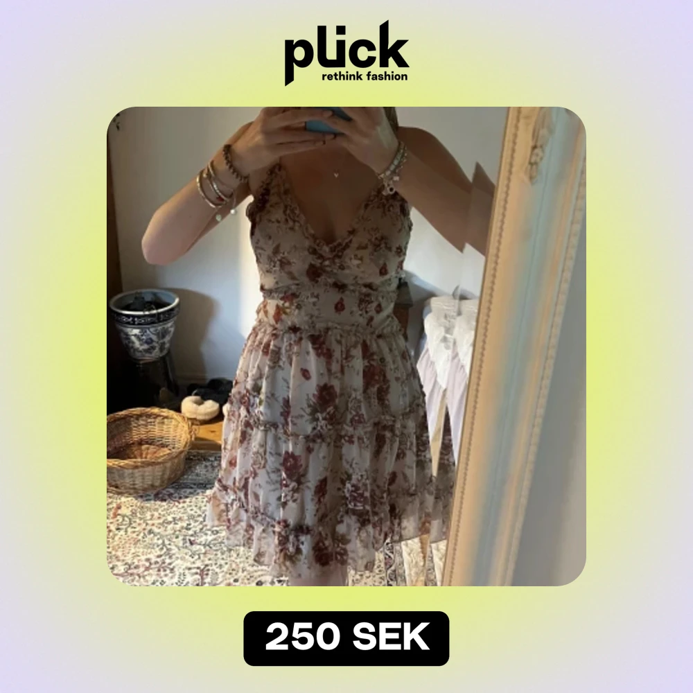 Säljer en jättefin, blommig volangklänning från missäy. Den är aldrig använd och prislappen sitter fortfarande på💞M/L men sitter som en M