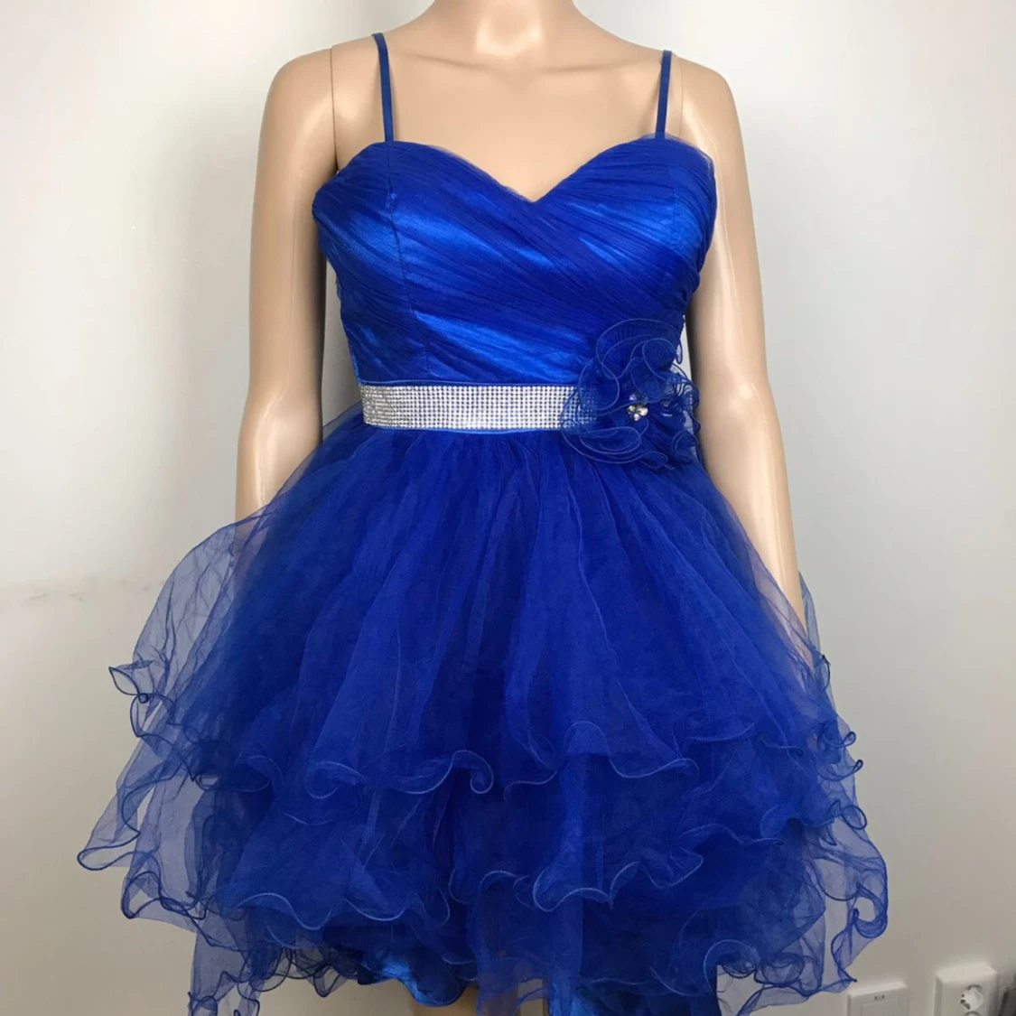 Balklänning  - Säljer min balklänning i marinblå som är glansig och har en glittrig detalj vid sidan om och med slits, den har en typ av korsett så att man kan justera hur man vill att den ska sitta på.  Orginal pris 600.