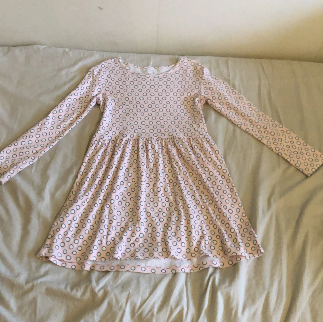 Supersöt ljusrosa klänning från Livly med vita och svarta prickar. Modellen är en kortklänning med lång ärm och rund hals. Mjuk och skön i bomull, perfekt för dig som gillar lekfulla och bekväma outfits. Pris kan diskuteras vid snabb affär.