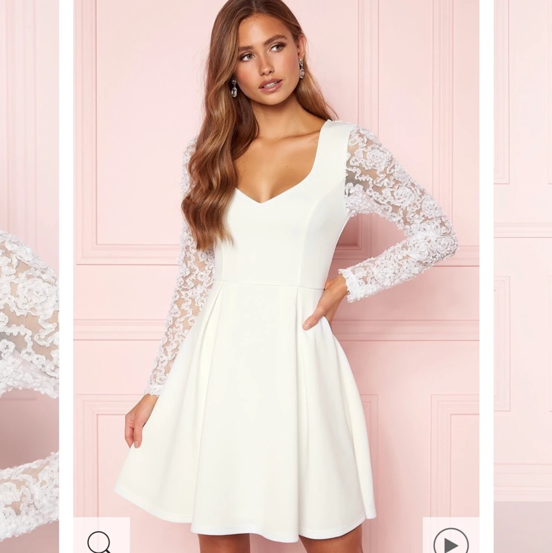Jag köpte den här klänningen till studenten 2021 men använde den aldrig. Jag minns inte priset men på Bubbleroom kostar den nu 899 kr. Det är en jättefin klänning men säljer den då jag aldrig kommer ha användning för den 💘🤍