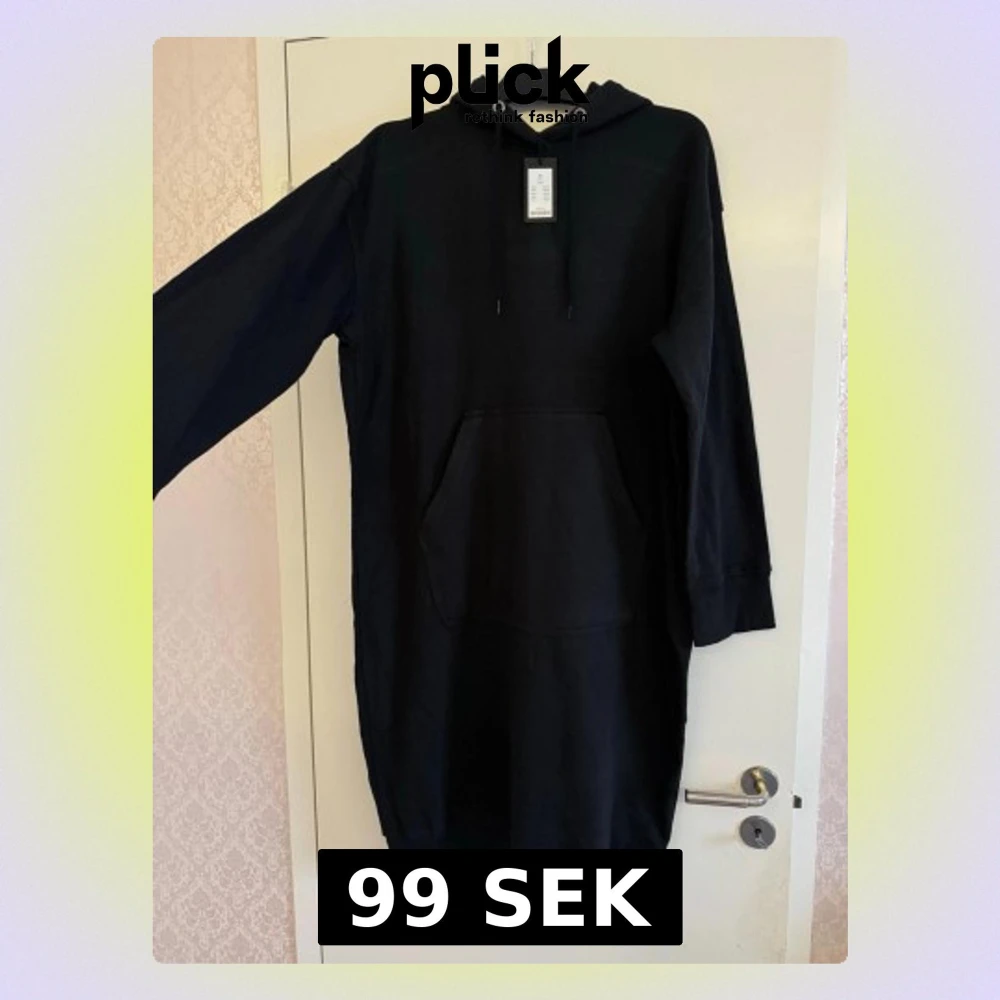 Storlek S Svart hoodie-klänning / lång hoodie – oversize passform och stilren från Lager 157