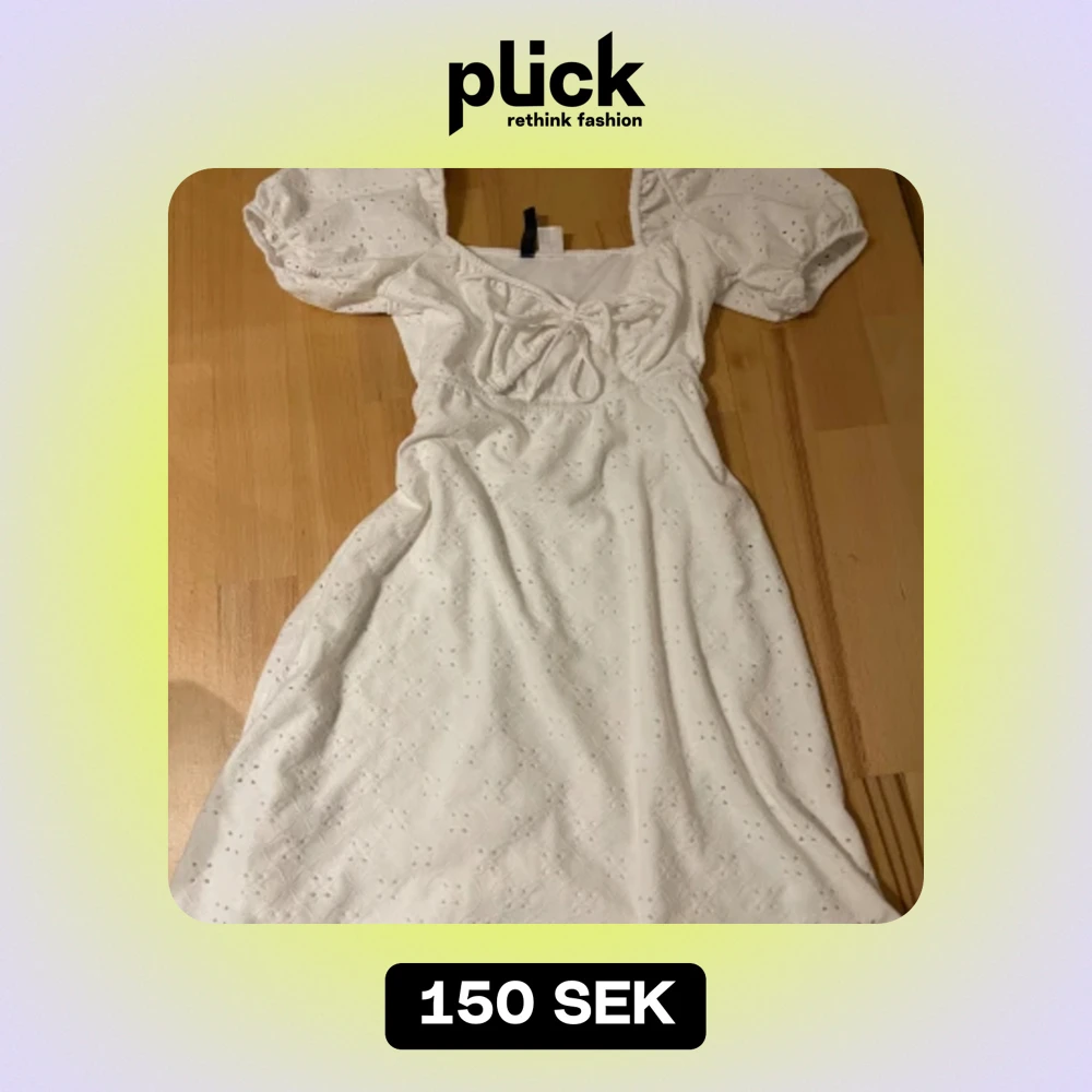 Jätte fin vit spets klänning! Perfekt till midsommar! Använd endast en gång. Köpte för 300 säljer därför för 100kr pris går att diskutera!