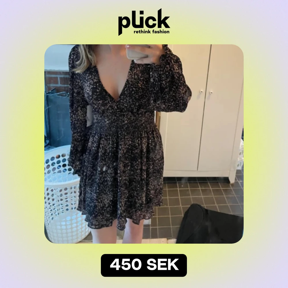Sjukt snygg klänning från na-kd med lapparna kvar. Endast testad men tyvärr lite för stor för mig i midjan. Resor i midjan med detaljer i kanten och även på ärmarna. Nypris är 699 kr, säljer för 400 eller 350 kr vid snabb affär. Storlek S.