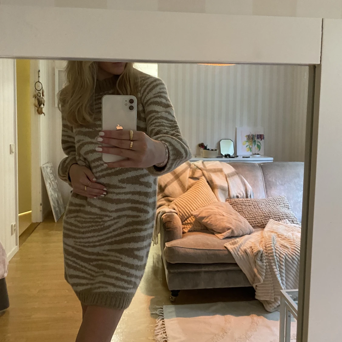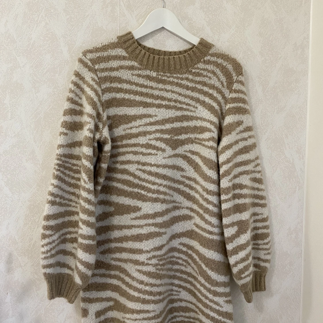 En stickad klänning från object, hur mysig som helst och fin i beiget zebra mönster, super skön och sticks inte utan bara väldigt mysig🤎