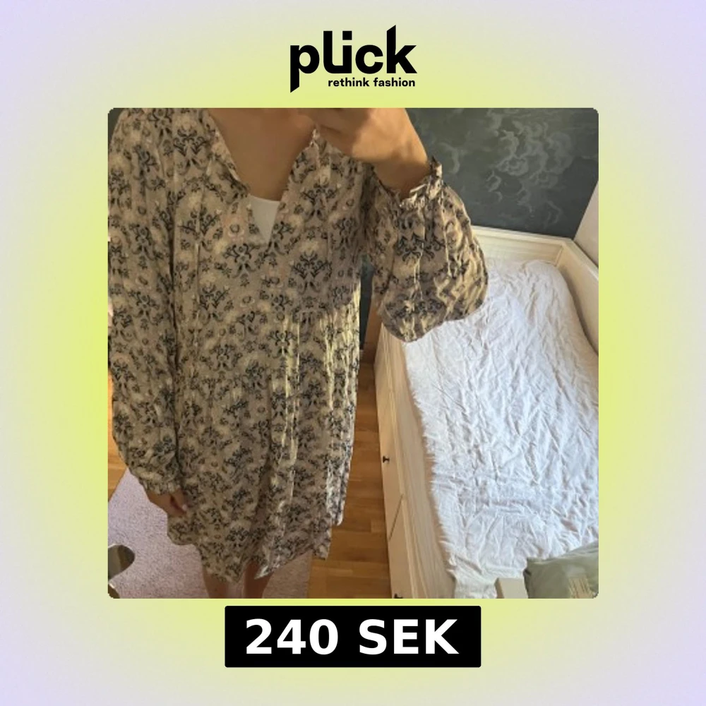 Säljer en superfin långklänning från Odd Molly med blommigt mönster i beige, svart och rosa toner. Klänningen har v-ringad hals, långa puffärmar med resår och ett luftigt, flowy material som känns skönt mot huden. Jag är storlek S o tror klänningen är typ en storlek L XL