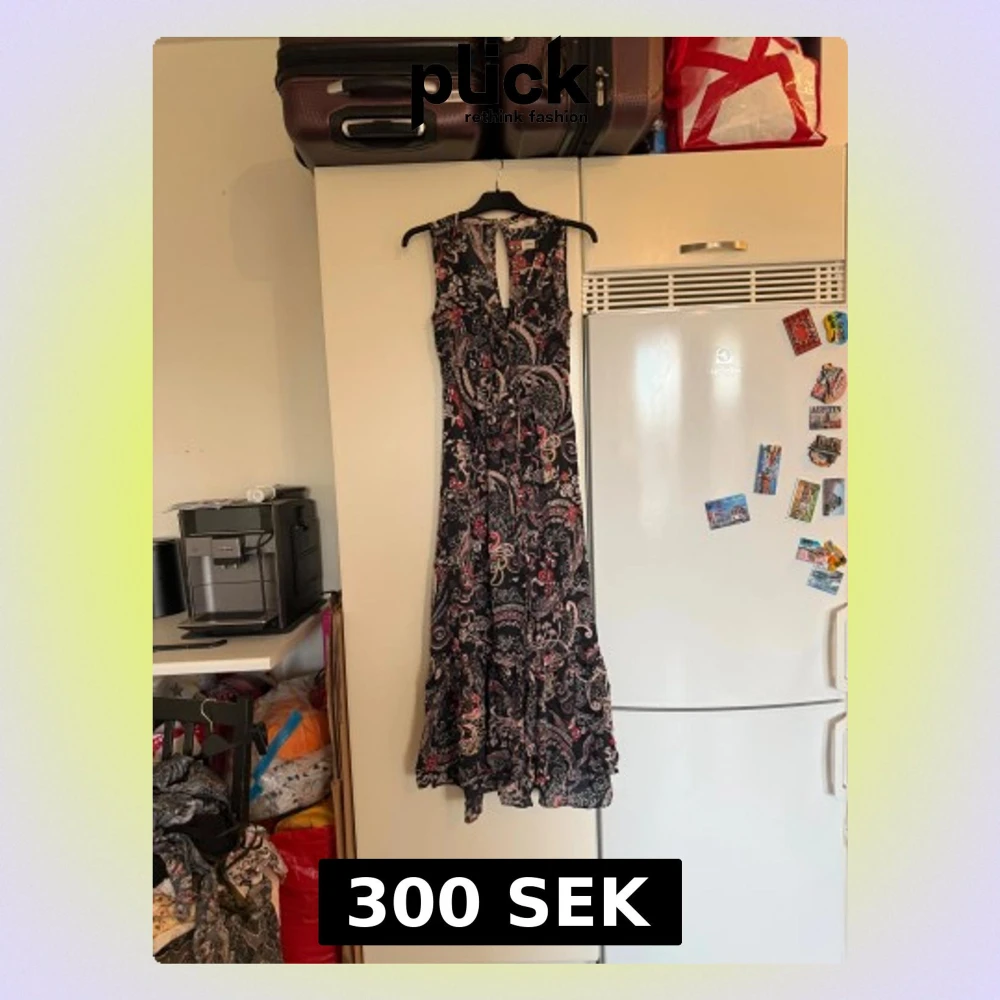 Säljer en svart långklänning från odd Molly med blommigt mönster i rött, beige och vitt. Klänningen är ärmlös, har v-ringad hals med snörning framtill och volangdetaljer nedtill. Materialet känns lätt och luftigt, perfekt för varma dagar. Storlek 1 som enligt deras storleksguide motsvarar en S. SAMPLE Mycket fint skick, jag hittar inga synliga anmärkningar eller defekter.