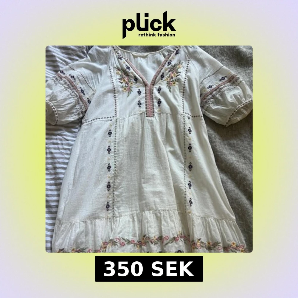 Superfin vit klänning från Odd Molly med broderade blommor och volangdetaljer. Klänningen har trekvartsärm och v-ringning med dekorativa sömmar och blommiga broderier längs ärmar och nederkant. Perfekt för sommarens alla tillfällen!