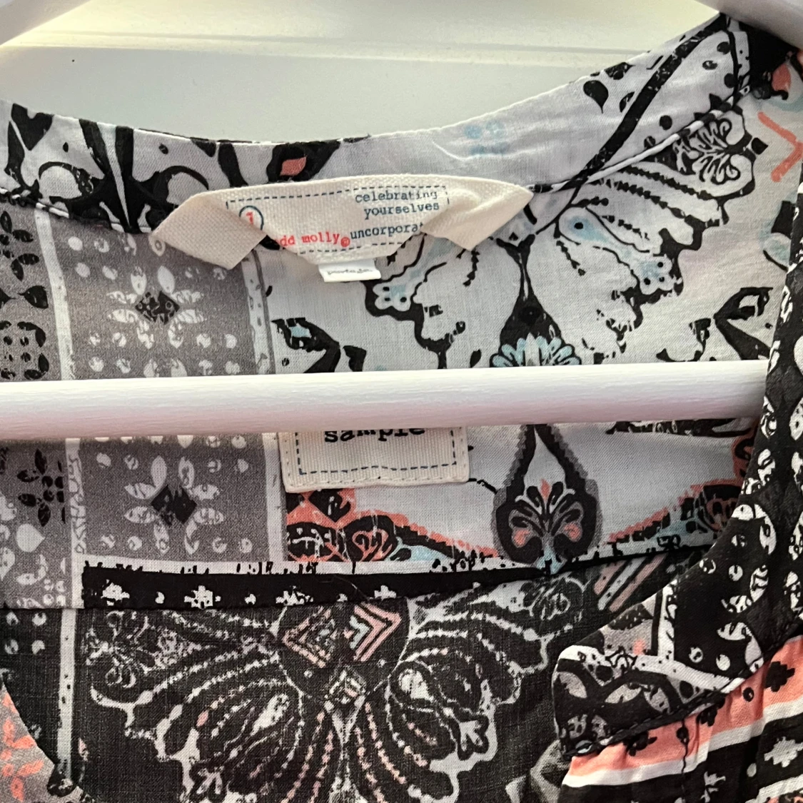 Snygg mönstrad onepiece med korta ben från Odd Molly i svart, vit och rosa. Strl 1 el S.