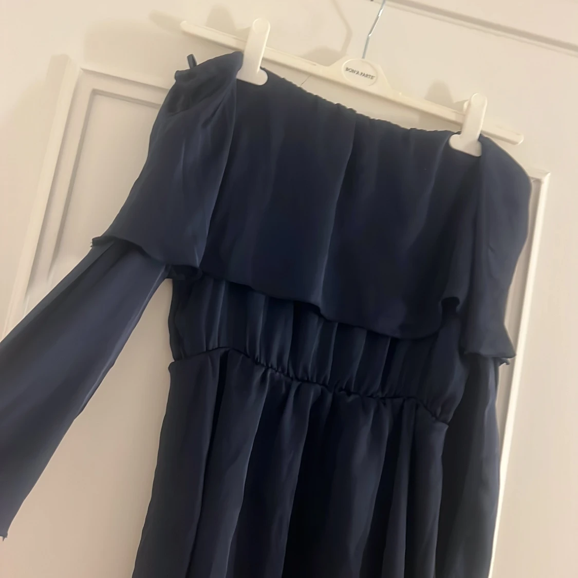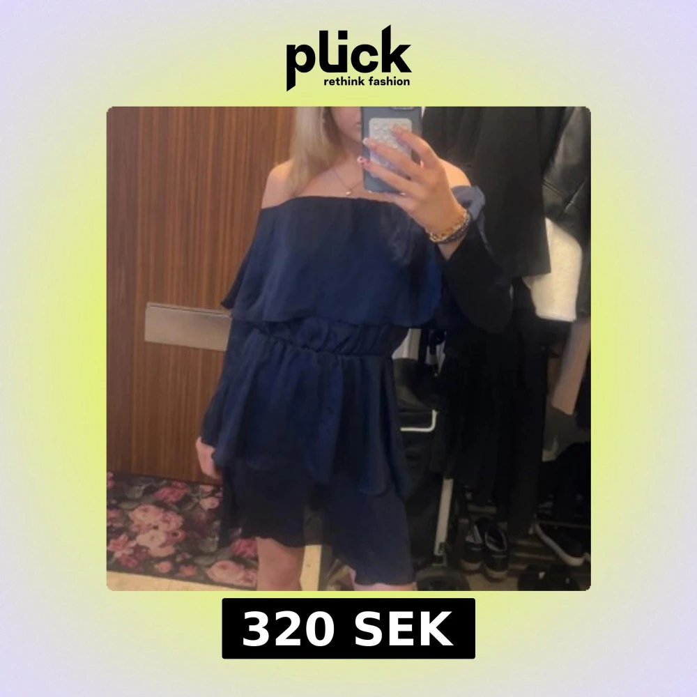 Of shoulder mörkblå klänning från Josefin Ekström storlek 38
