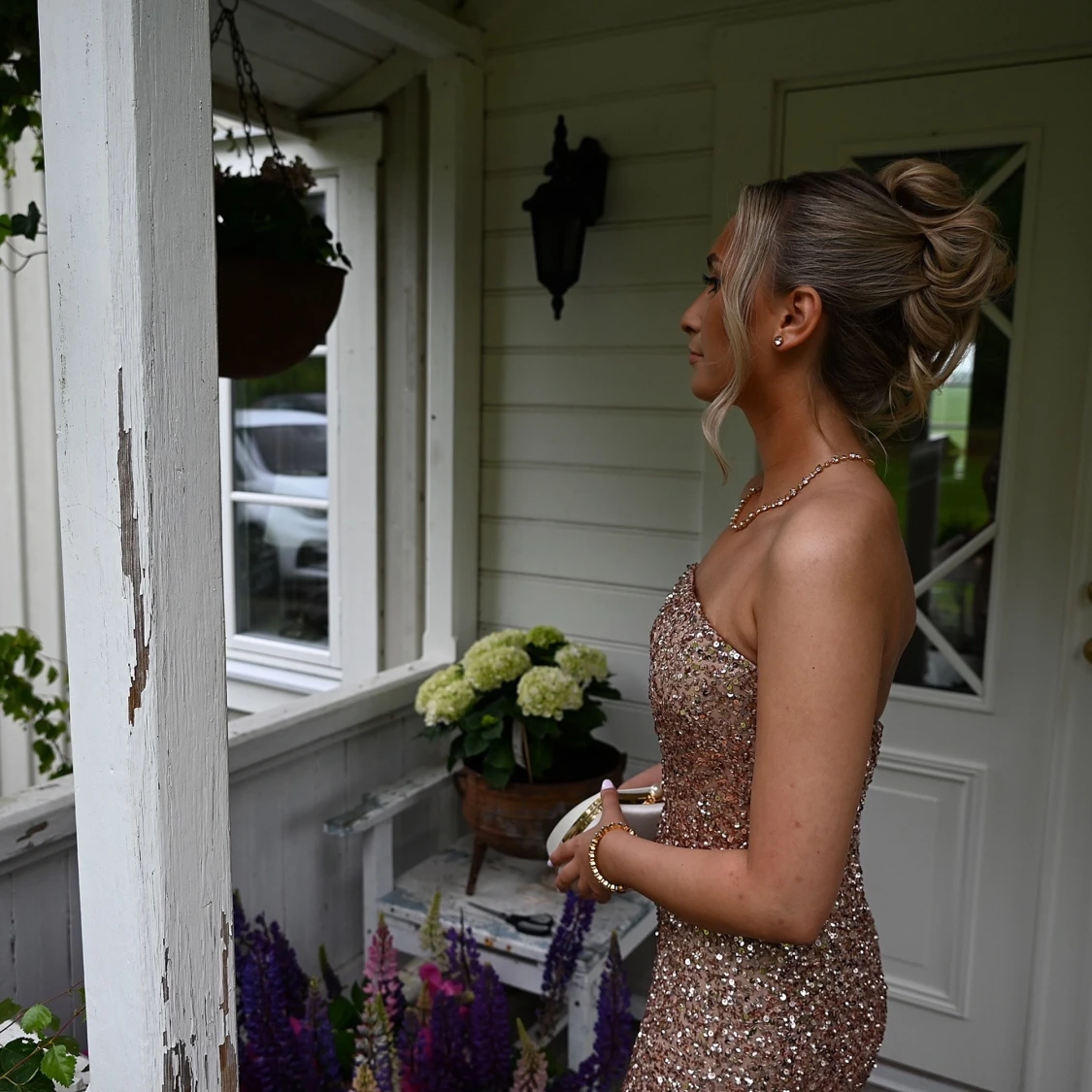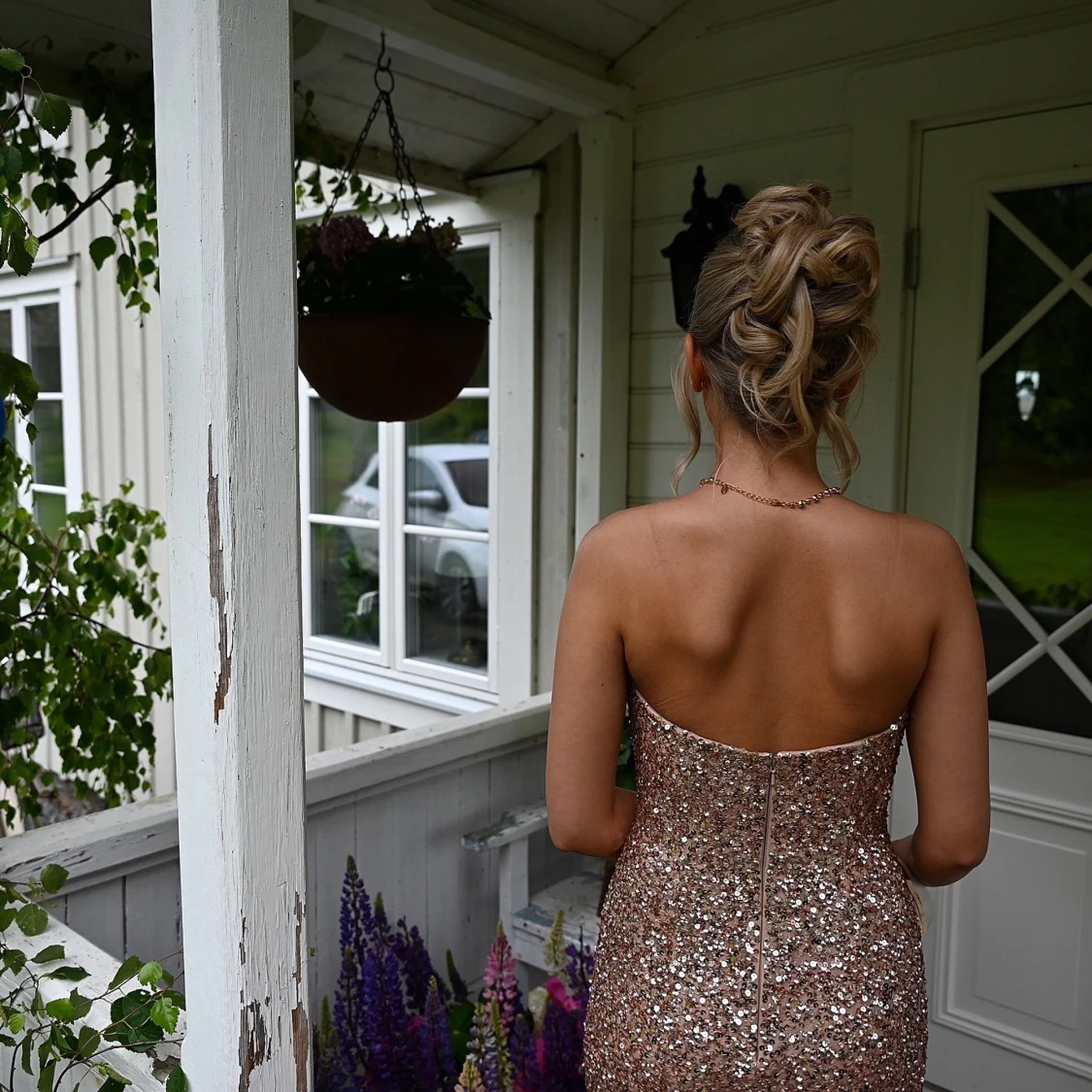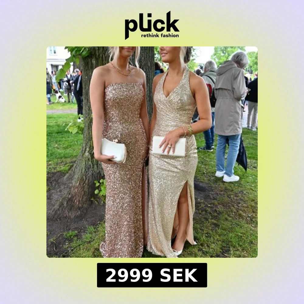 Säljer en superfin långklänning i guldig ton med massor av paljetter som glittrar. Klänningen är axelbandslös, figurnära och har en snygg dragkedja i ryggen. Perfekt för bal och fest. Klänningen kommer från märket dressroome och är andats använd en gång! Nypris 5000kr men säljer för endast 2999! Pris kan dock diskuteras