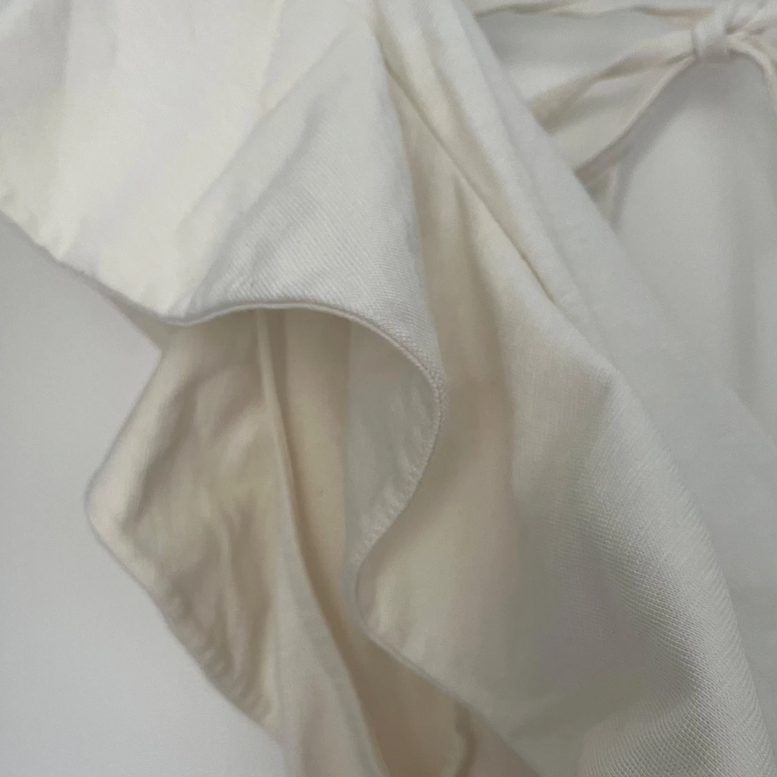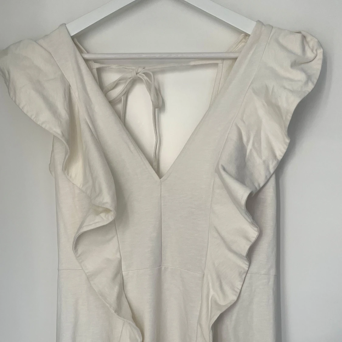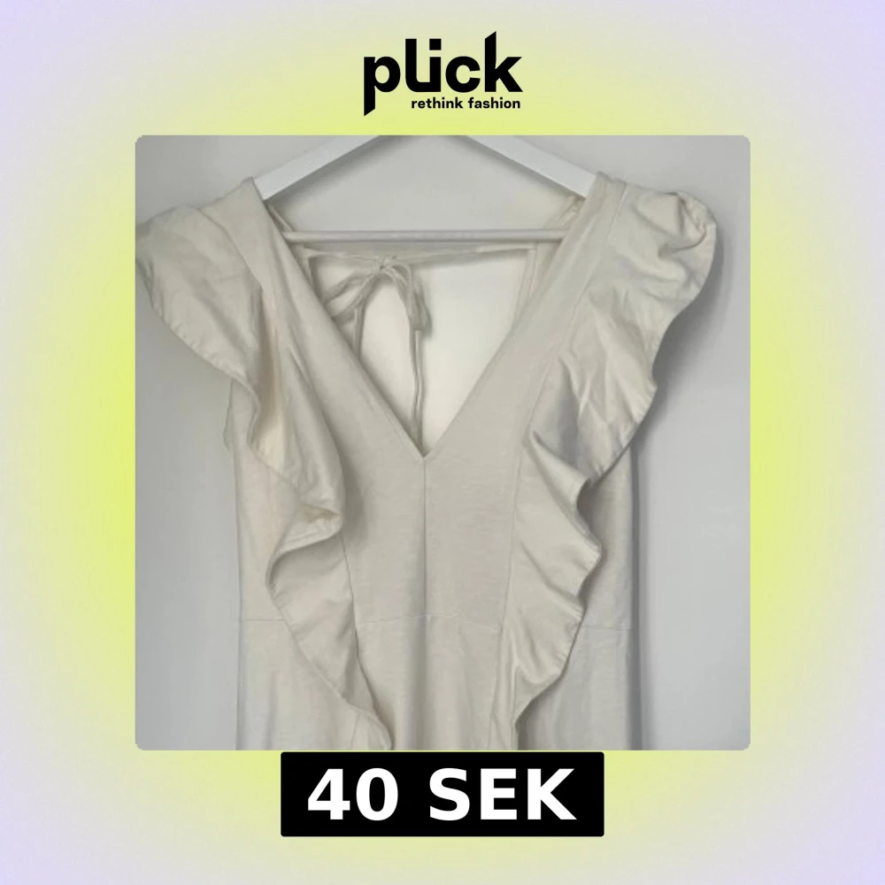 Säljer denna off-vita klänningen som är perfekt att ha på sig till stranden, den är i lite tjockare material. Köpte den från Sellpy men den var tyvärr i fel storlek. Når ner till mitten av låren.