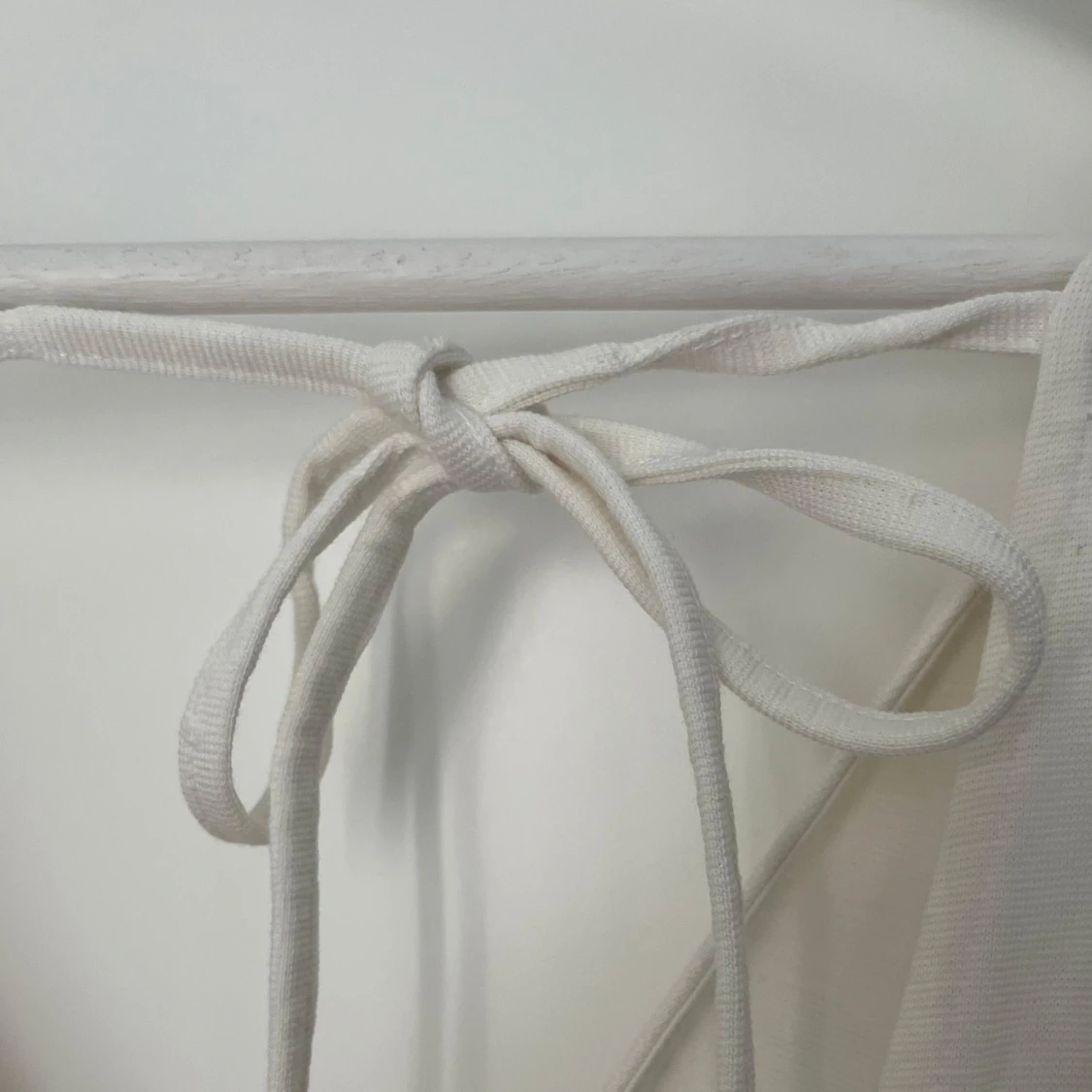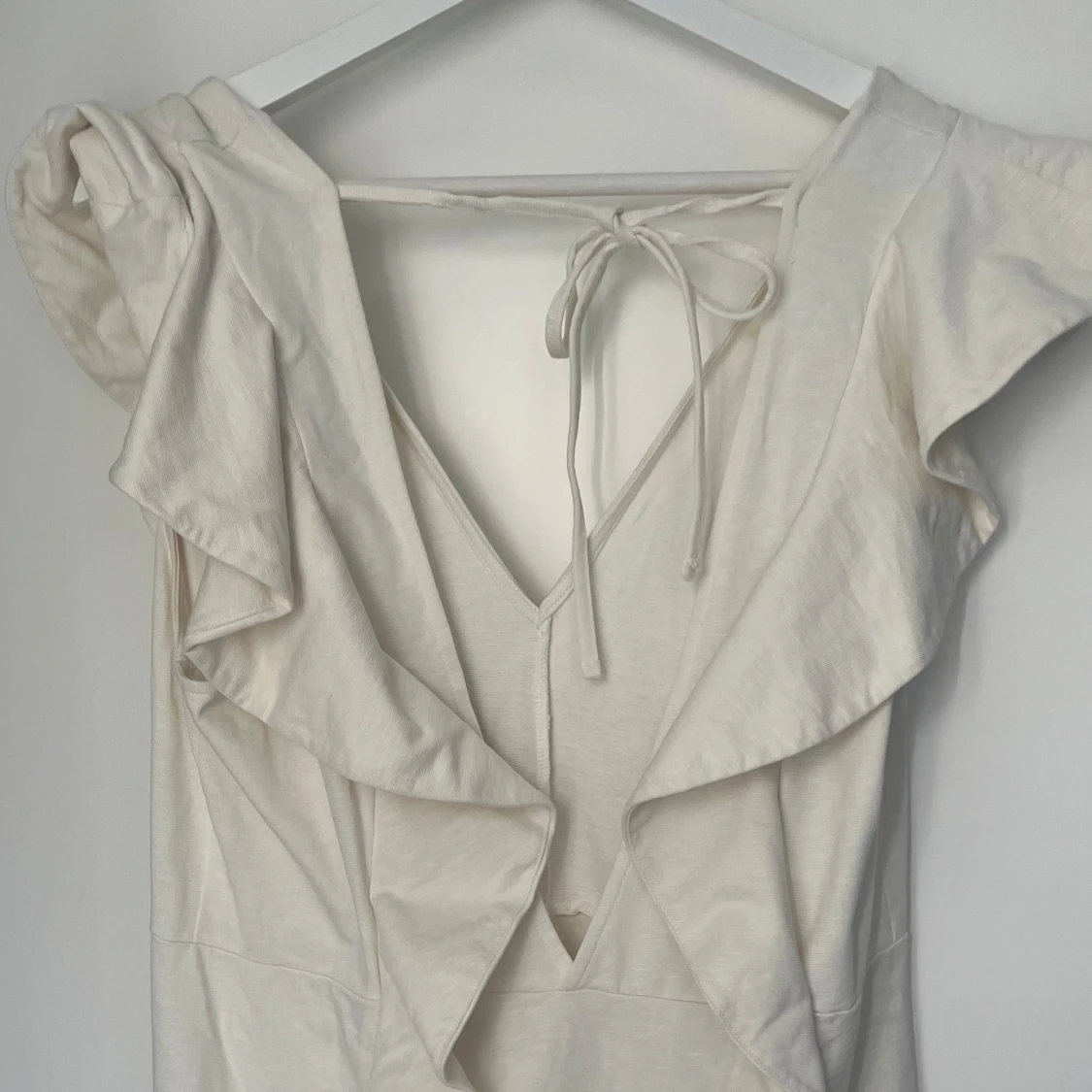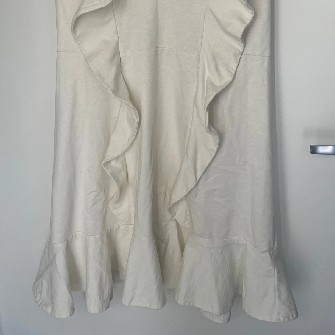 Säljer denna off-vita klänningen som är perfekt att ha på sig till stranden, den är i lite tjockare material. Köpte den från Sellpy men den var tyvärr i fel storlek. Når ner till mitten av låren.