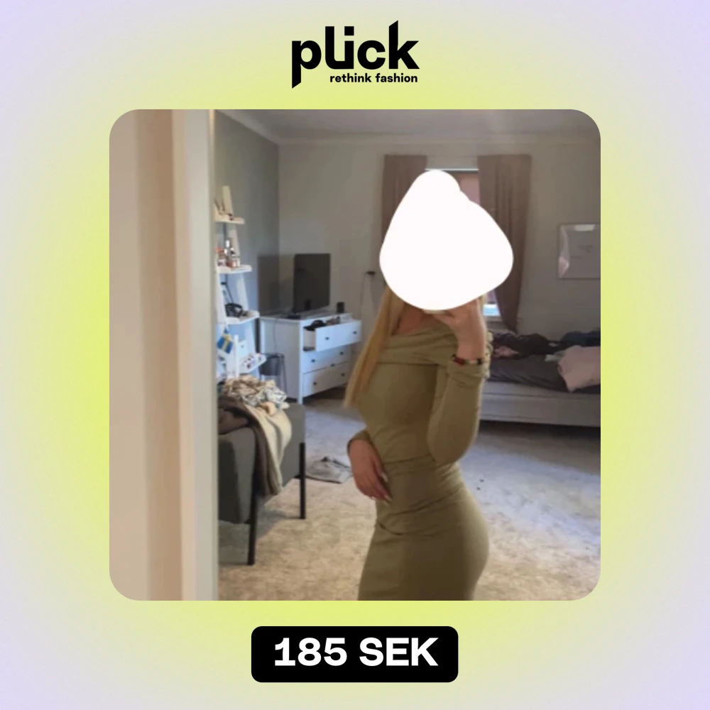 Ljusgrön/olivgrön Off sholder klänning. Använd en gång. Från Nelly storlek xs. Pris kan diskuteras.