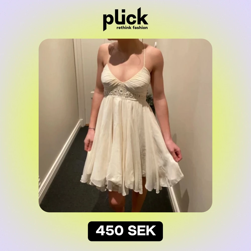 KlĂ€nning frĂ„n Sonic Londonđ Sparsamt anvĂ€nd i fĂ€rgen âoff whiteâ med dragkedja i sidan och band som gĂ„r ner och knyts i ryggen. Paljetter, pĂ€rlor och stenar i midjan. VĂ€ldigt somrig och idylliskđ€ Uk10, men mer som en xs-s. Köparen stĂ„r för fraktđ