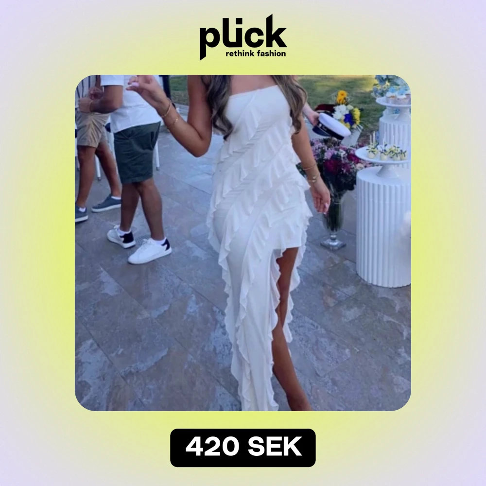 Vit lång klänning med slits, endast använd engång och i mycket bra skick🫶🏼 Från Oh polly🤍