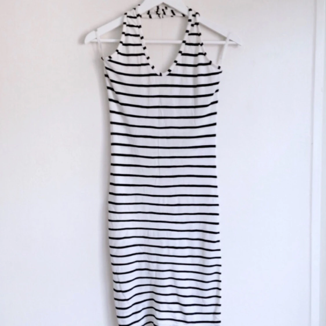 Randig klänning med halterneck i 90tals-stuk! Bomull. Superstretchig så tror den passar allt från XS-M 🌸