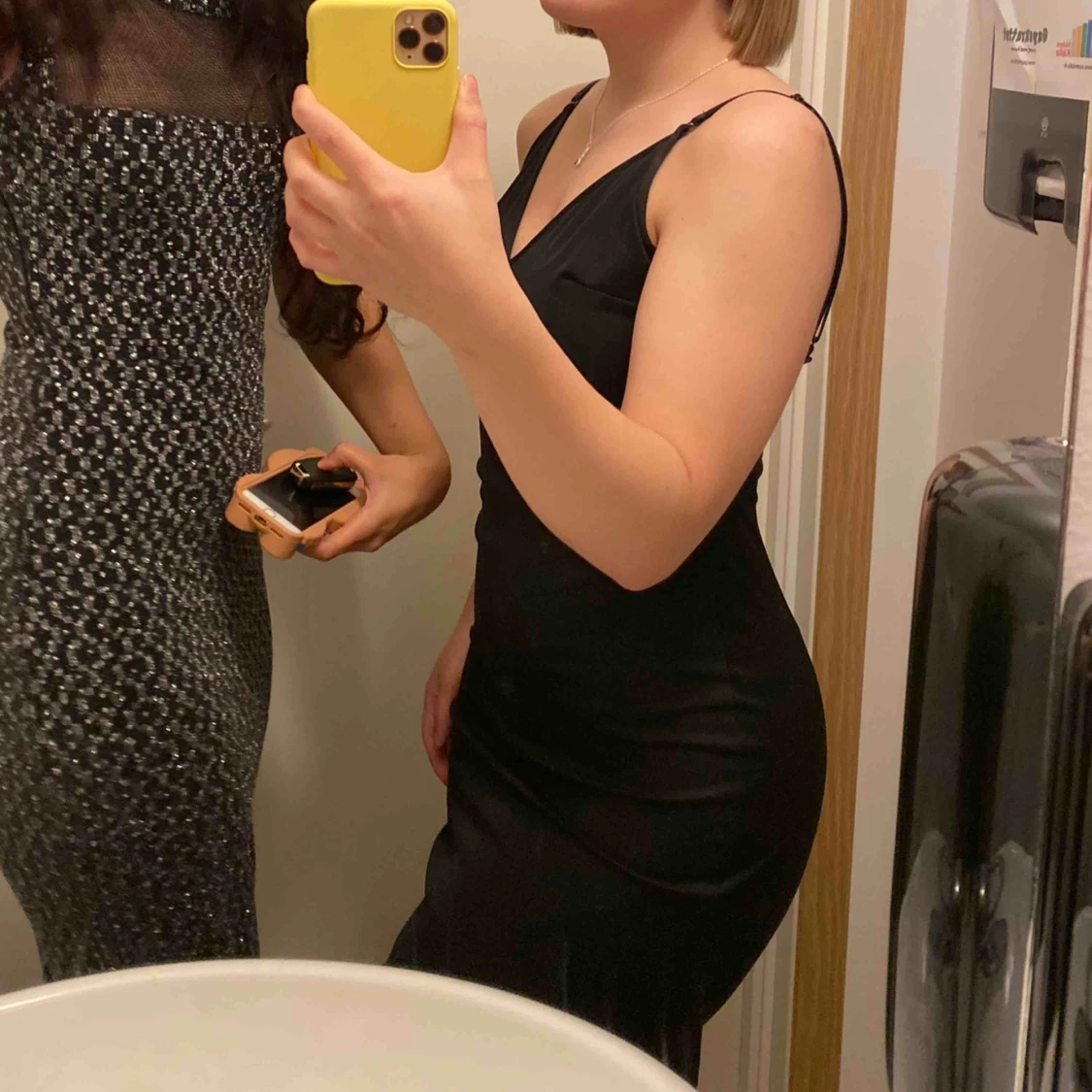 Balklänning använd endast en kväll. Köpt på humana. Det står ingen storlek men skulle gissa att det är en S. Då klänningen var för lång för mig (163 cm) så har jag klippt av och sytt upp den men det är inget som syns. Axelbanden är avtagbara.