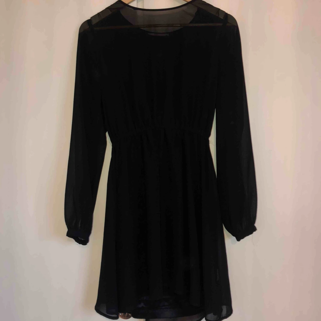 Svart klänning i chiffongliknande material med underklänning. Tänker att det vore fint att ha ett skärp i midjan! Rök/djurfritt hem. Frakt: 35 kr