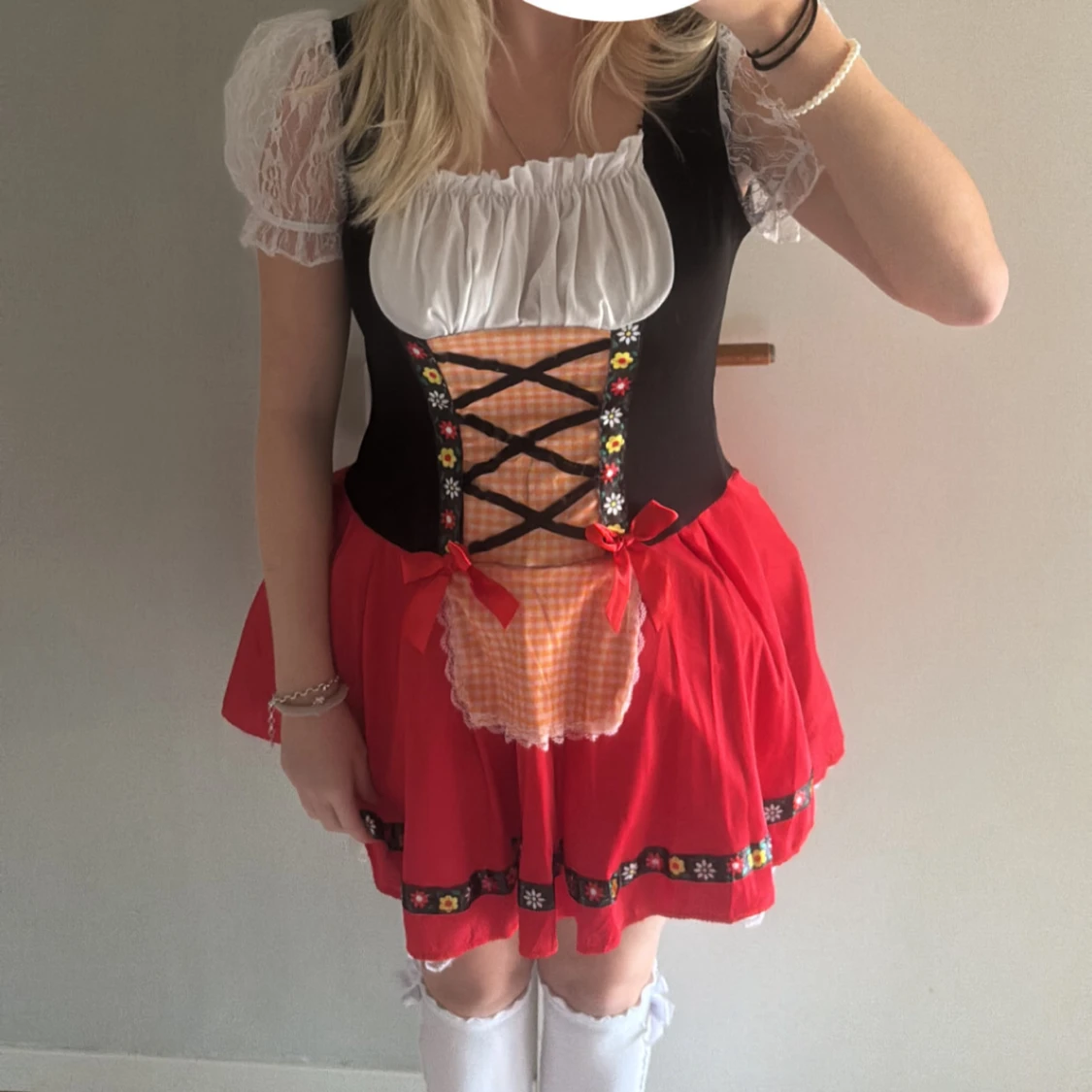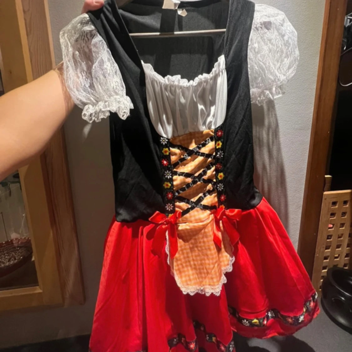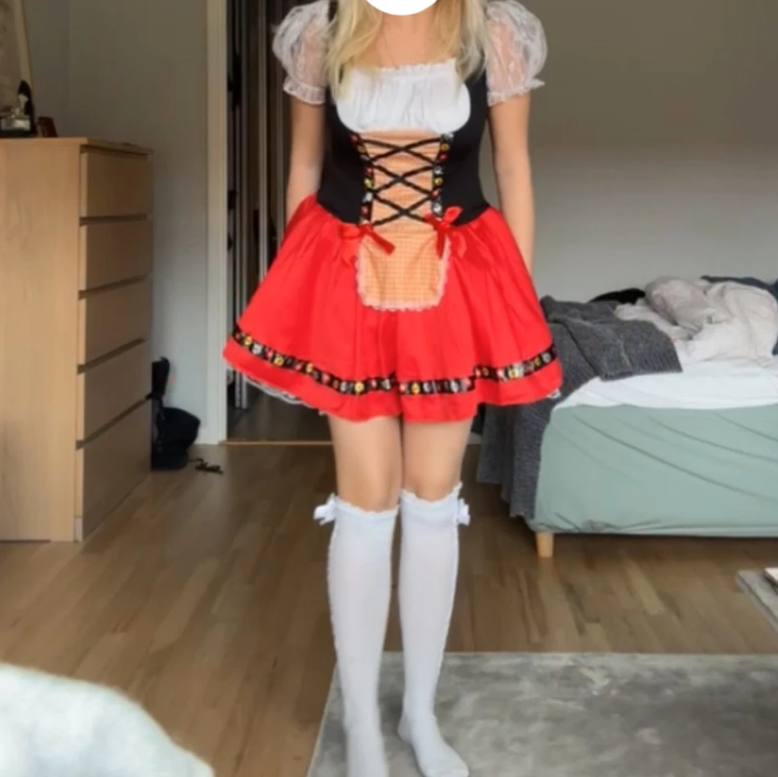 Superfin oktoberfest klänning. Köpt second hand, använd ca 2 ggr totalt. Pris kan diskuteras. Klänningen + strumporna. Lite slitningar baktill. Kan skicka bild vid intresse.