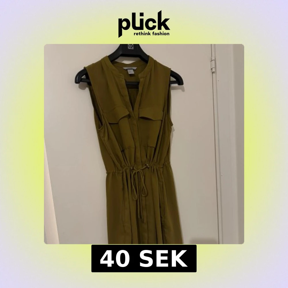 Snygg olivgrön klänning med knytband i midjan för en justerbar passform. Klänningen är ärmlös och har en stilren design som passar perfekt för varma dagar.
