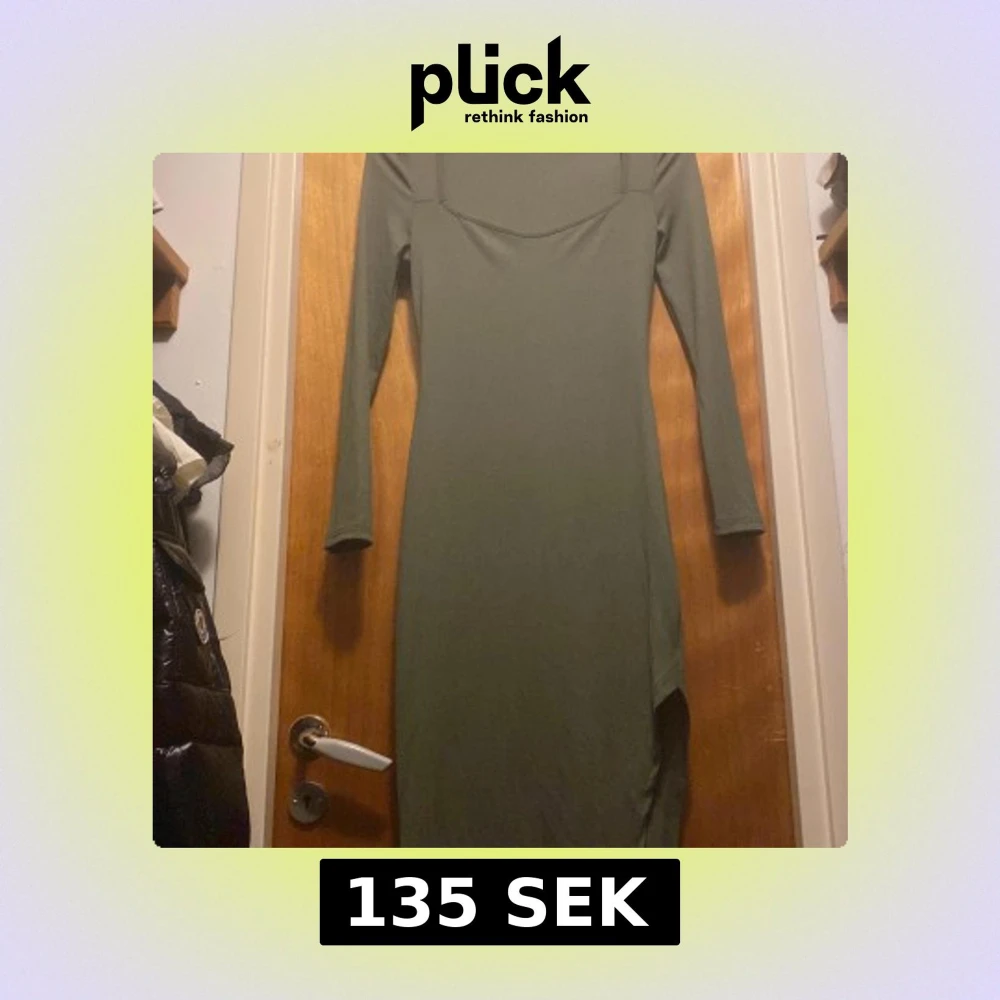 Säljer en olivgrön långklänning med lång ärm och rundad halsringning. Klänningen är ribbad och har en tight passform som framhäver siluetten. Perfekt för dig som gillar en enkel men stilren look.