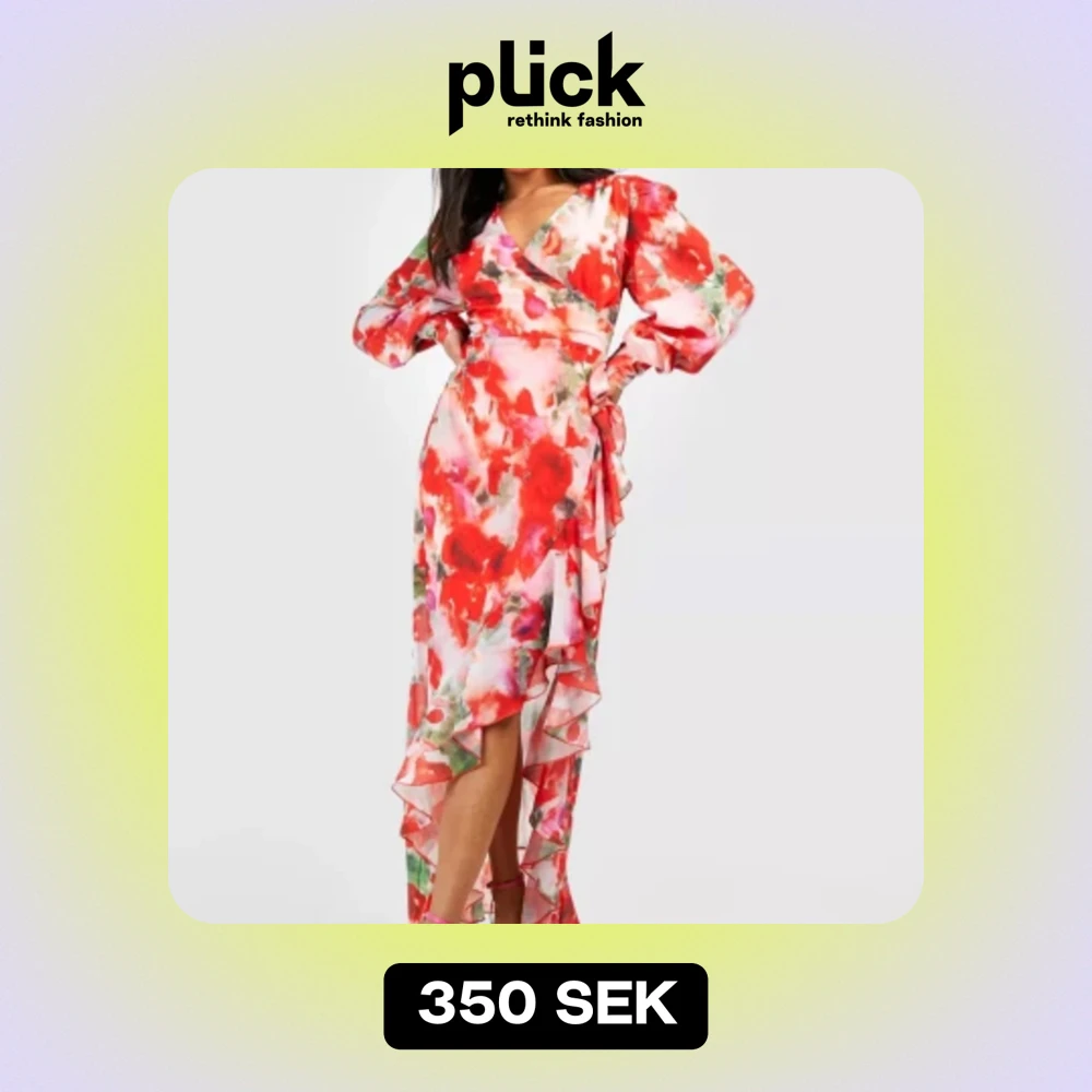 En vacker och elegant klänning med blommor och volanger. Ser ut som på bilden. Helt ny och oanvänd pga för liten. Storlek 42 men liten i storleken (den passade ej mina höfter). Perfekt för dig som är petite/kortare❣️