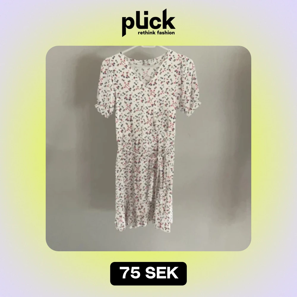Jättefin omlottklänning som passar perfekt till sommaren. Mönstret med röda, gröna och blå blommor med vit botten.