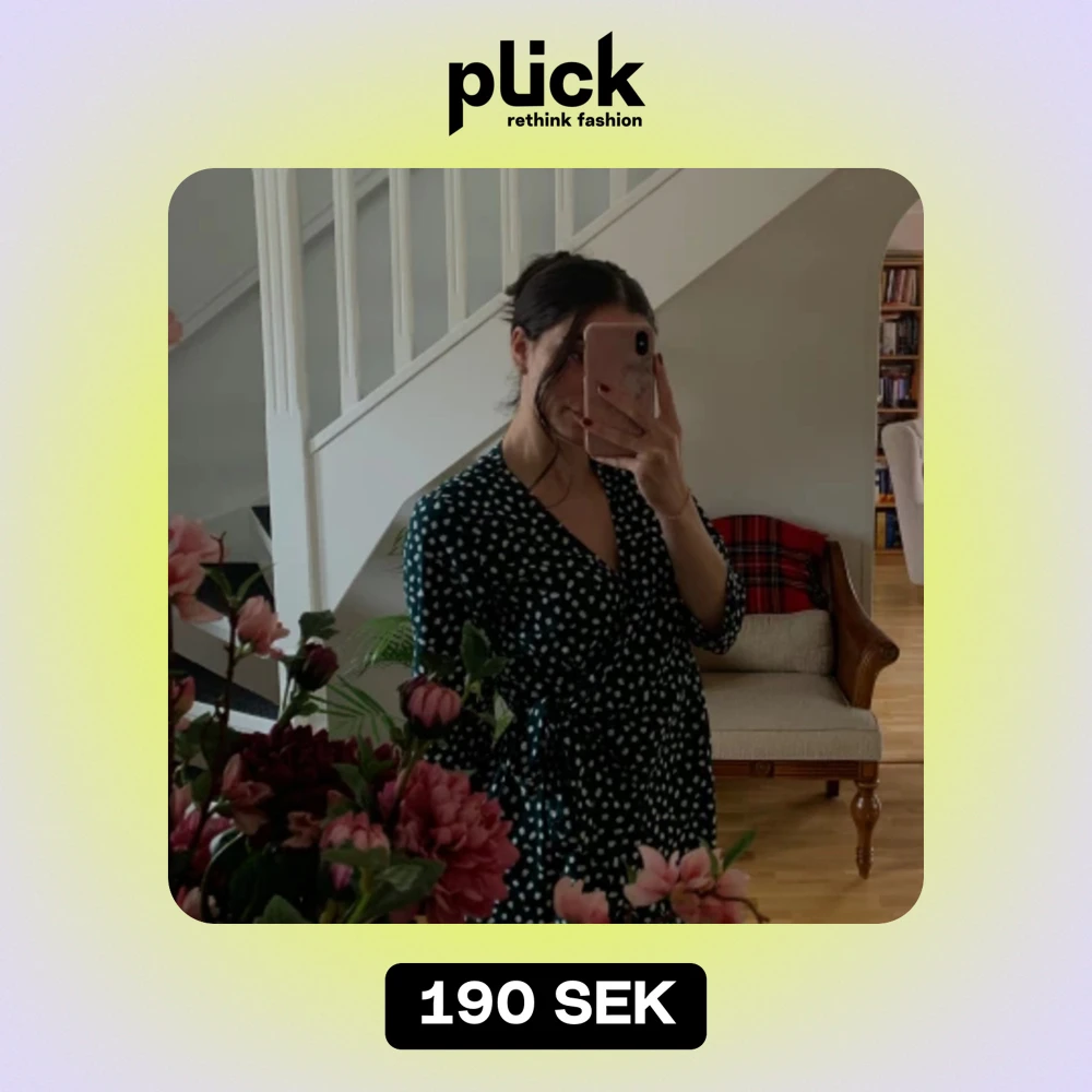 En mörkgrön lång omlottklänning med vita prickar från Vera Moda. En stor favorit som nu blivit för liten på mig⭐️