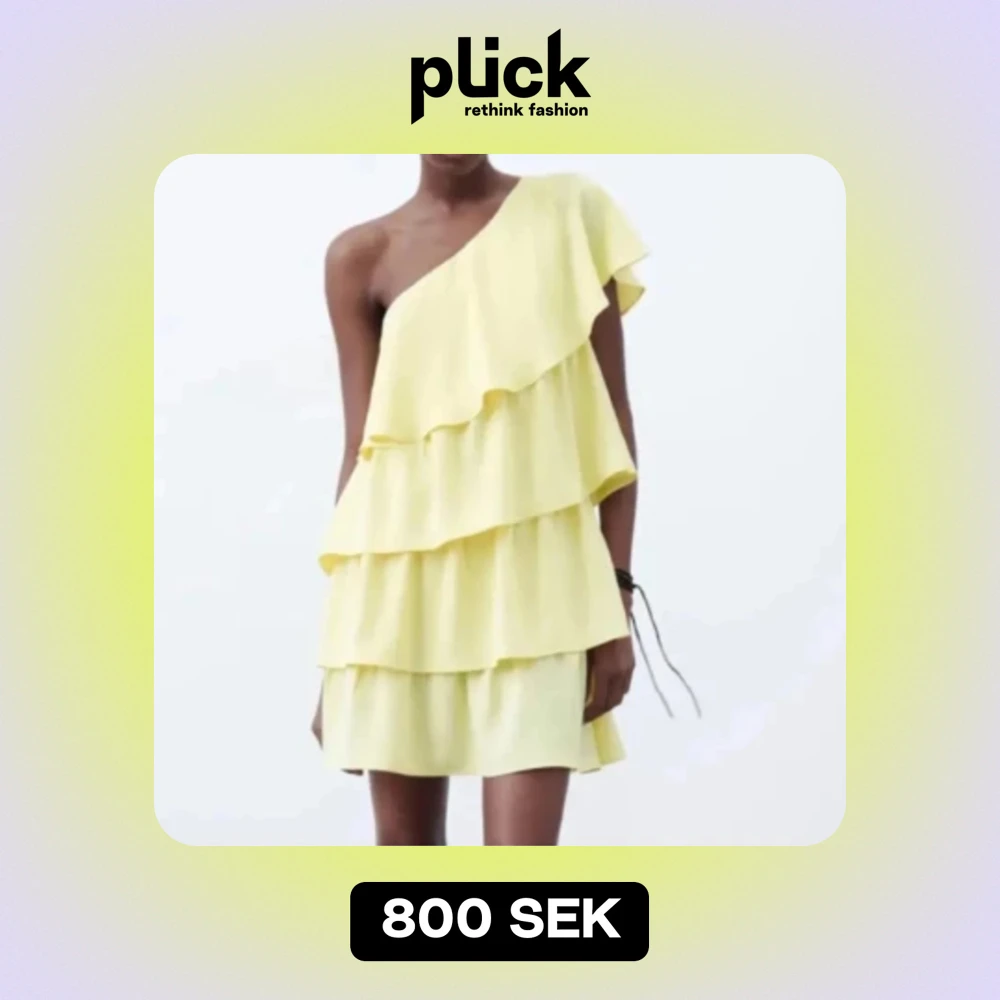 (Endast intressekoll och säljer bara för bra bud) på eftersökt gul oneshoulder volangklänning från zara i bra skick - skriv för fler bilder 💛💛💛 passar mig som brukar ha XS