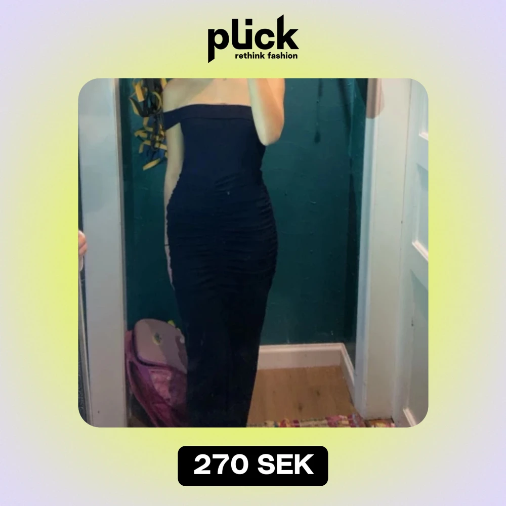 Säljer denna fina klänning från PLT i storlek 6 (xs). Aldrig använd. Det är en one shoulder klänning med slits i marinblå, men man kan även ha den som en bandeau klänning. Köpt för ca 300kr.