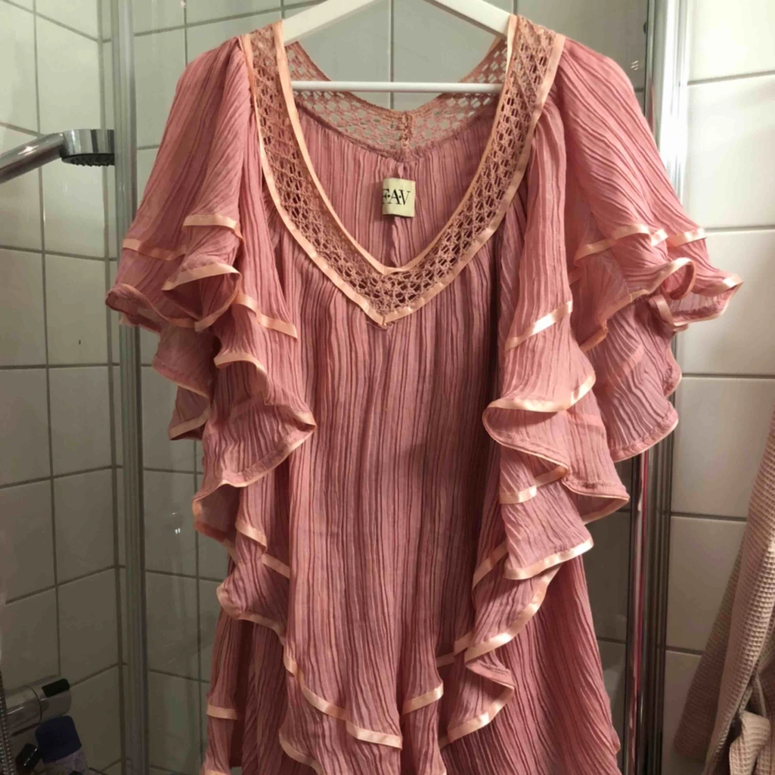 Super fin pastellfärgad volang klänning. Som är i onesize. Har använt den Max 5gånger