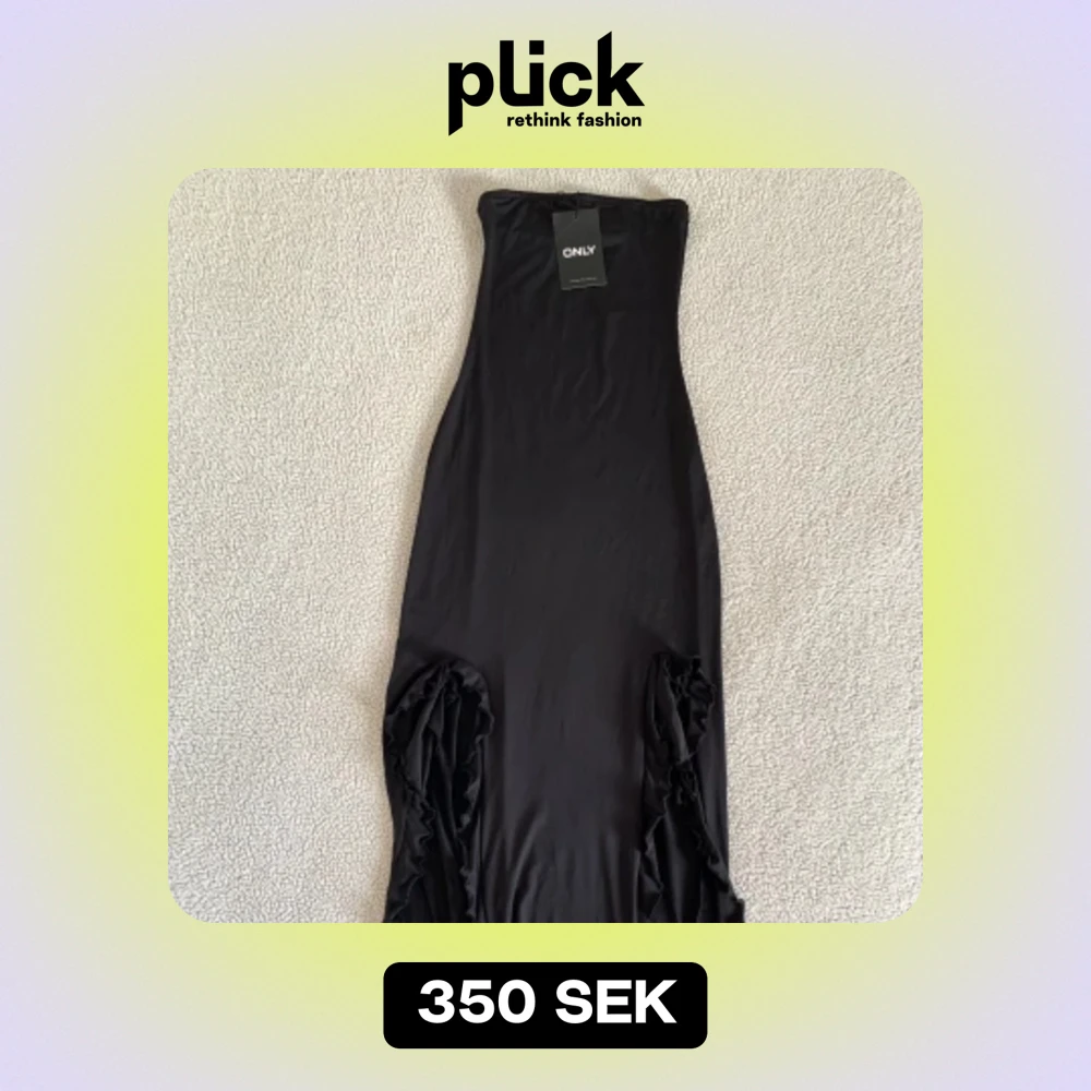 Otroligt snygg bandeau klänning med volanger från Only. Håller sig på plats med silikonremsa vid bysten. Stretchigt material. Sitter som ett smäck. 💃 Ny med prislappar, utan anmärkningar. Ordinariepris 459kr.