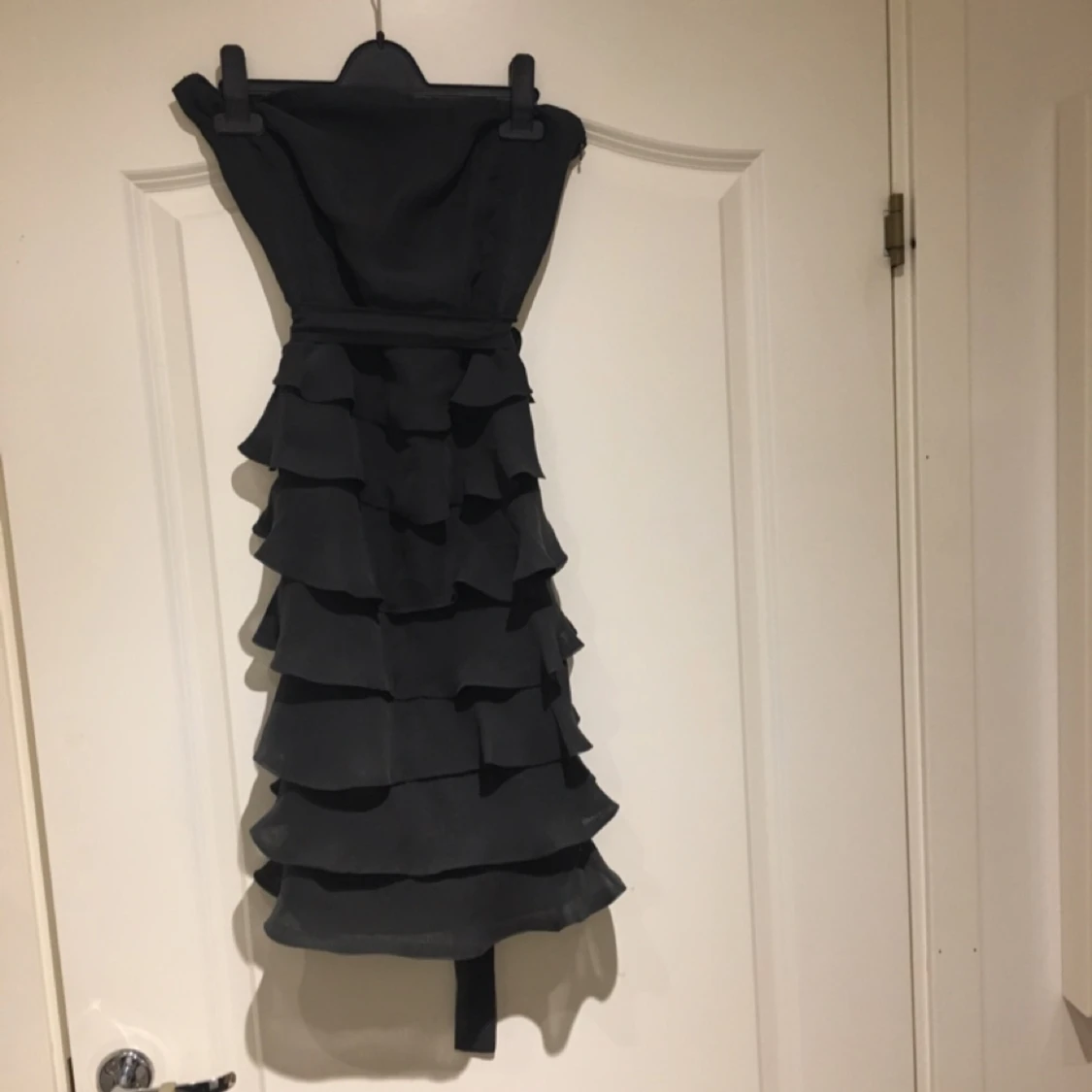 Volangklänning från Only. Snygg passform, har en mörkgrå/blå färg. Passar strl M.