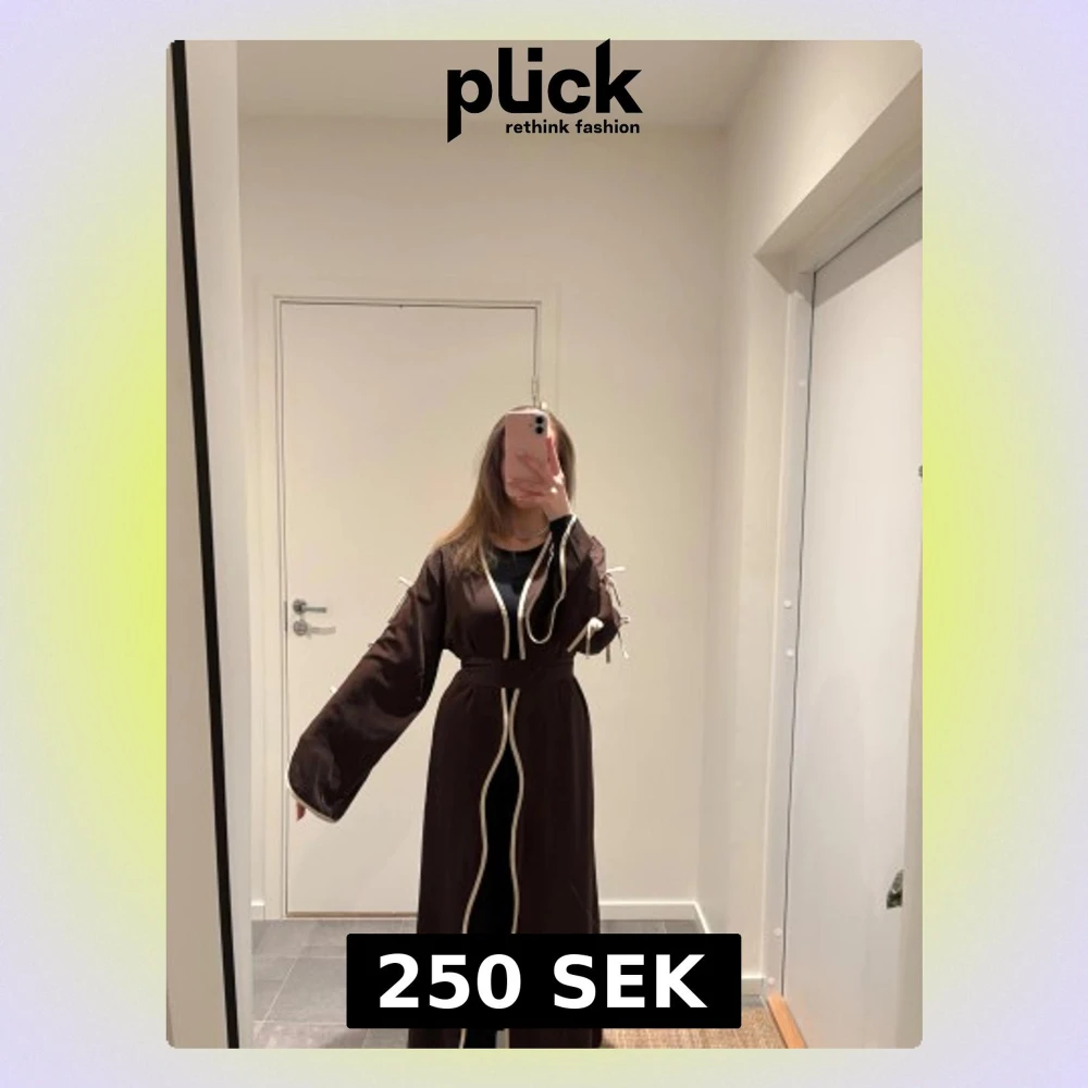 Säljer mina bruna open-abaya med söta beiga rosetter. Jag är 166 cm lång. Använd en gång och har inga defekter. Blälte / band tillkommer. 🤎 den har fickor också!!
