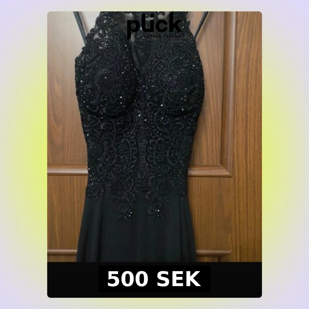 Säljer min gamla balklänning. Så fin och elegant. Öppen i ryggen och superfina glittriga och spetsdetaljer på framsidan. Står inte storlek men passar XS-M och kupan passade mig som har B. Bra i längden för mig som är 175 cm 🖤