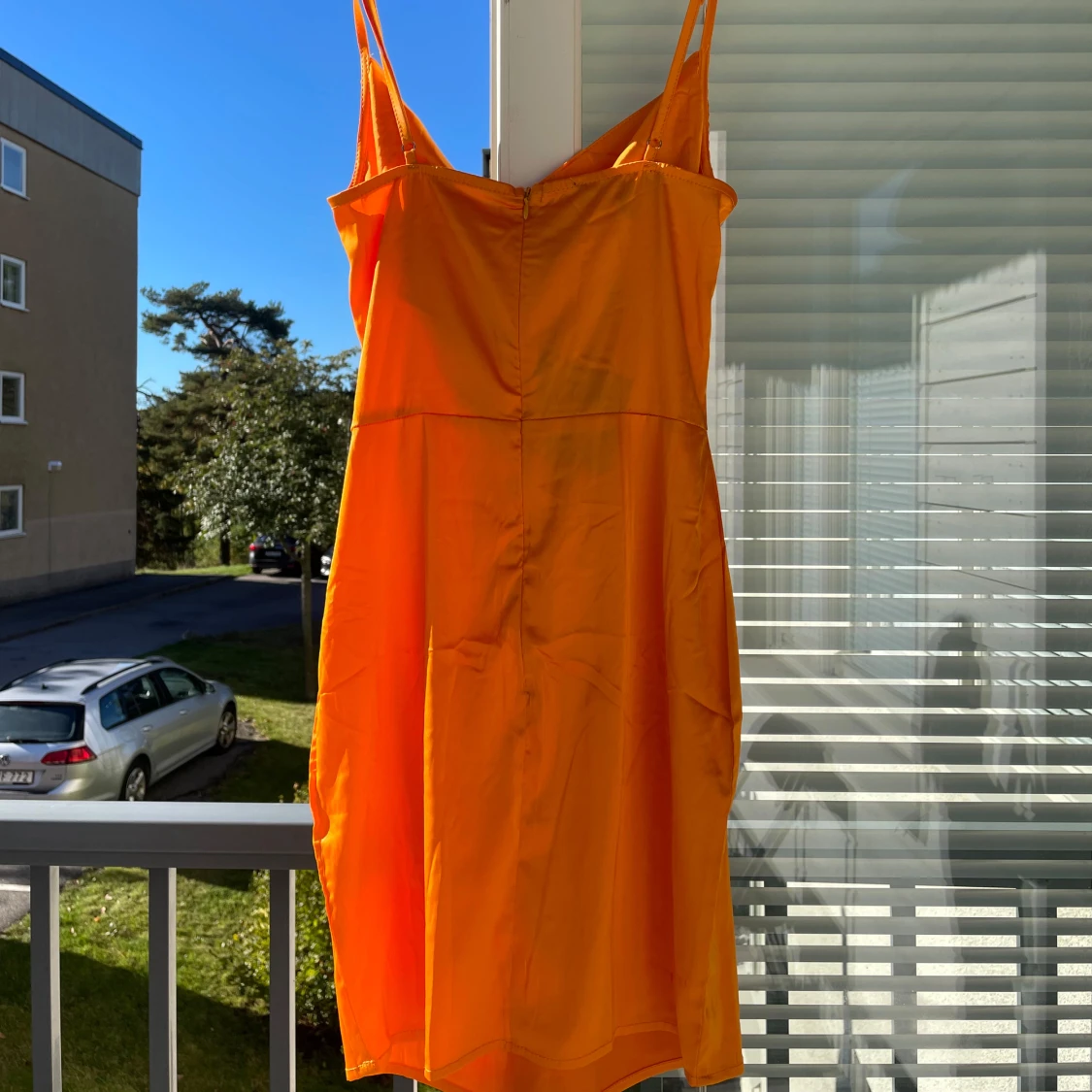 Säljer en superfin orange klänning med smala axelband. Den är perfekt för sommardagar och har en härlig, livfull färg. Klänningen är i ett mjukt och lätt material, vilket gör den bekväm att bära hela dagen. Perfekt för både vardag och fest!