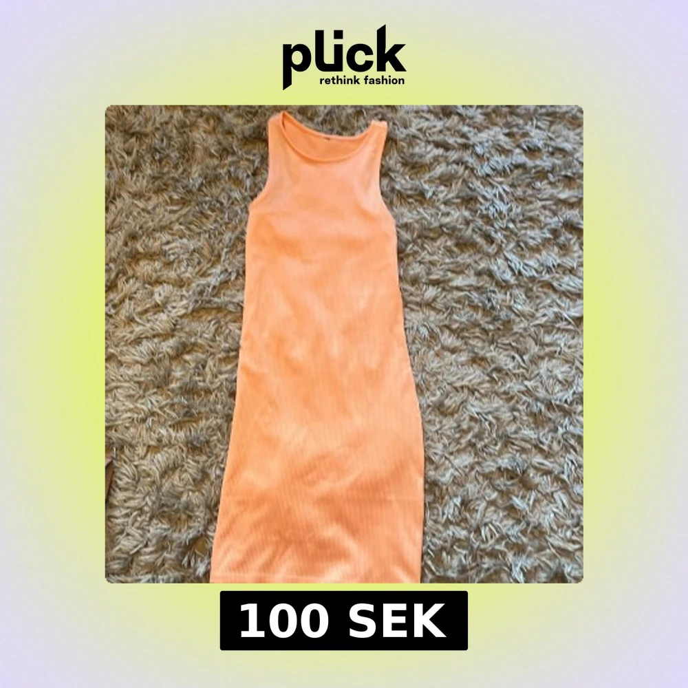 Säljer en ribbad, ärmlös klänning i en fräsch orange färg. Klänningen har en tight passform och är i midi-längd, perfekt för varma dagar. Materialet är stretchigt och bekvämt, vilket gör den enkel att bära hela dagen.