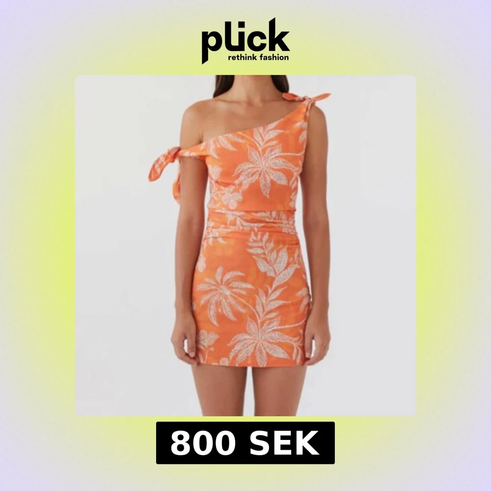 Säljer en orange kortklänning från Peppermayo med mönster. Klänningen har one shoulder-design med knyt på axeln och är i linne. Den är så snygg men var tyvärr för liten för mig.